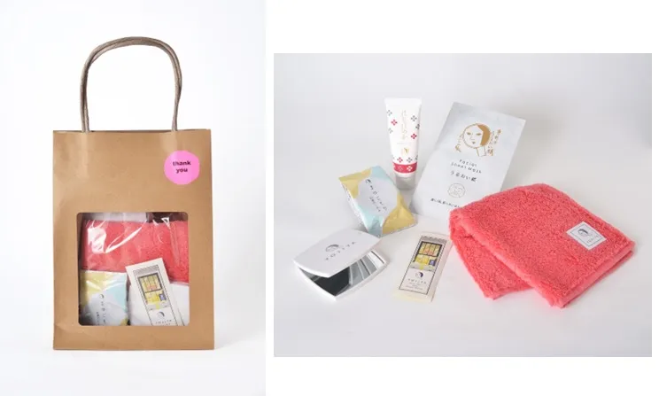 ルクア大阪のイメージカラー「ピンク」を基調に、ギフトで人気のハンカチやはんどくりーむ、 非売品のミラーも入ったルクア大阪だけのオリジナルセット!