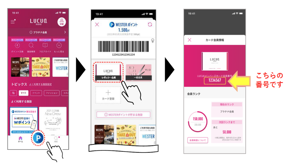 ※WESPOアプリからのLUCUAメンバーズカード会員番号確認方法