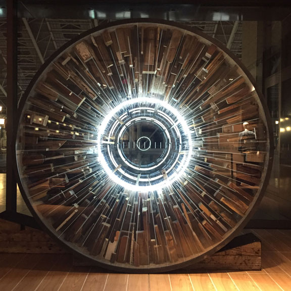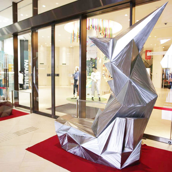 鏡面フィルムに反射して見える光の揺らぎは、見えない風のエネルギーを可視化していて、「命」LIFEとはエネルギーの揺らぎそのものである。今回のオブジェクトはそのメタファーであり、反射する光が水面のように見えるのもまた自然なことかと思う。