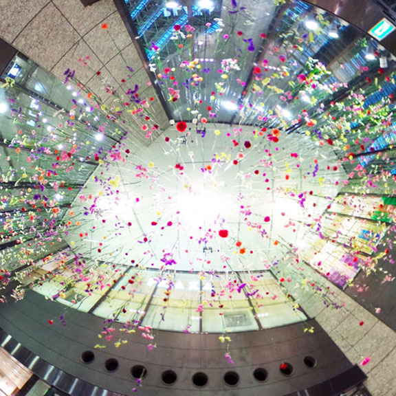 今回のメインテーマであるLIFEと私たちの理念。世の中に緑を増やし続ける・緑で関西の景色を変える。そしてこのアニバーサリーを祝う意味も込めこの空間を考えました。圧巻の量の花で埋め尽くされた空間は祝福・豊かさ・心地よさ・香りで全ての人々を幸せな気持ちにしてくれる事でしょう。