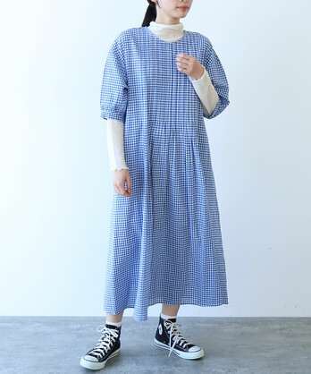 △〇 ギンガム ピンタックワンピース