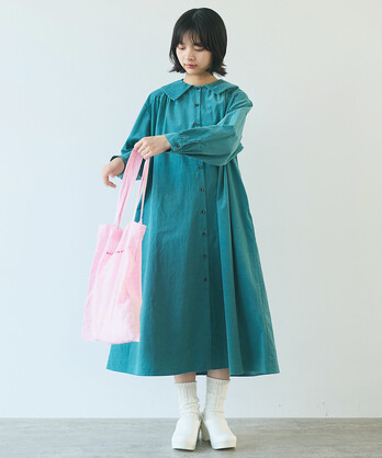 〇 21Wシャツコール 角襟ギャザーワンピース