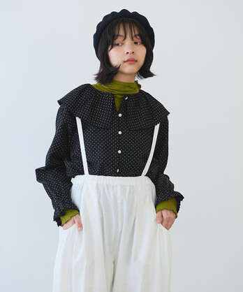 ○ キュプラ ルナファー ドット プリント ケープ襟ブラウス