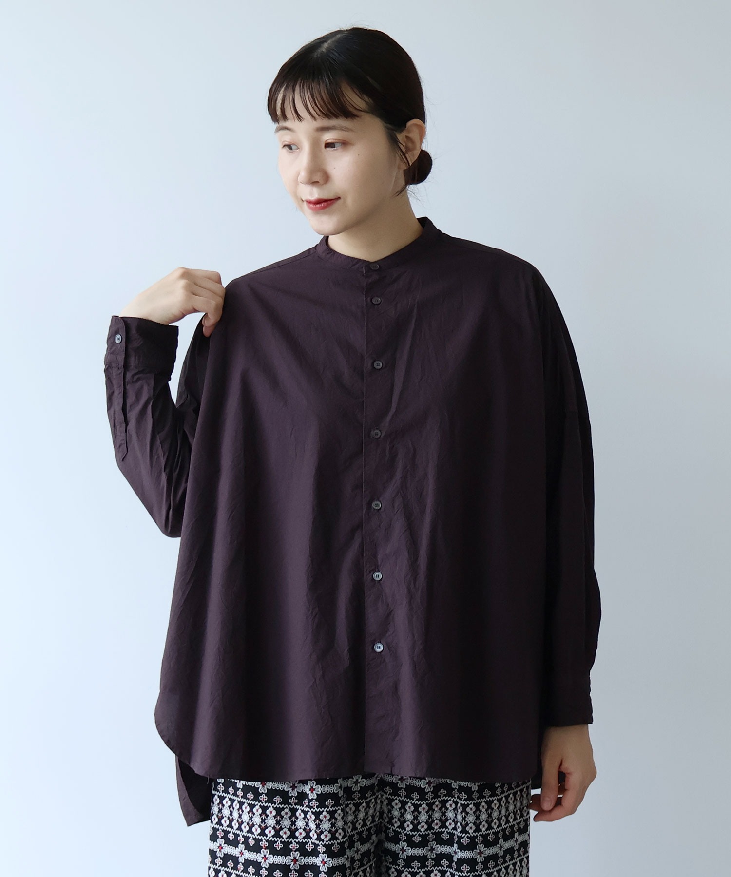 ○コットンキャッチワッシャー ワイド ブラウス