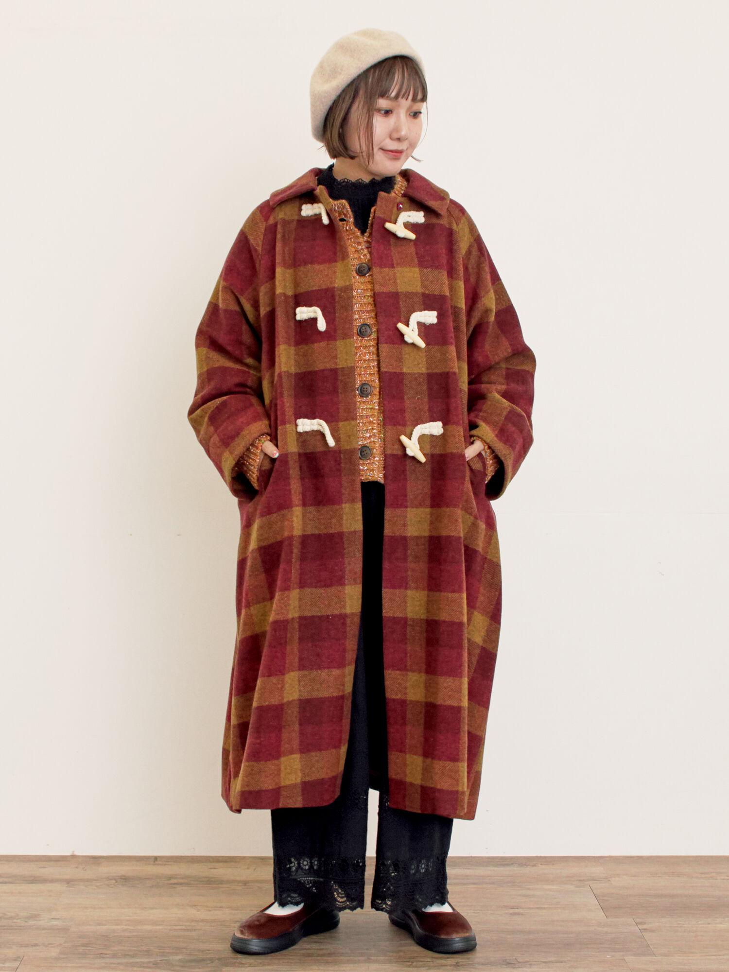 タスマニアウールを使った ロングコートを着て見ました🧶 大きめチェック柄がとても可愛く このコートは羽織るだけで つい遠出したくなります♪