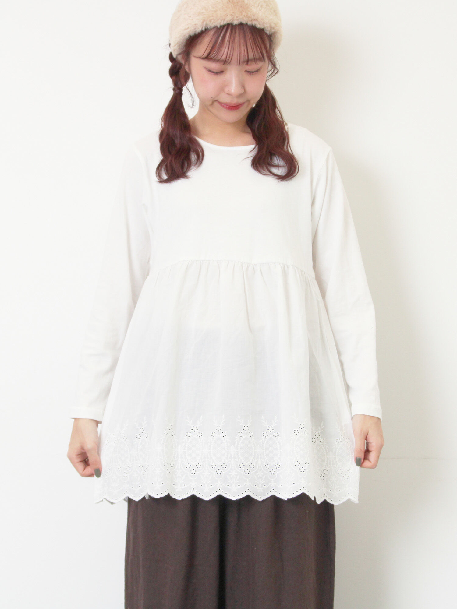 ブラックフライデー限定価格の アイテムだけを使ったコーデ🌼 スウェットとパンツだけでは シンプルになりがちですが、 裾レースのインナーを重ね着することで より可愛い組合わせに変わります☺︎
