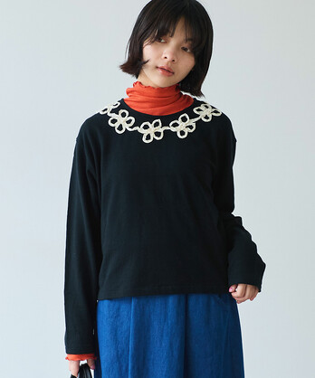 △〇 くるくるはなテープ刺繍 プルオーバー