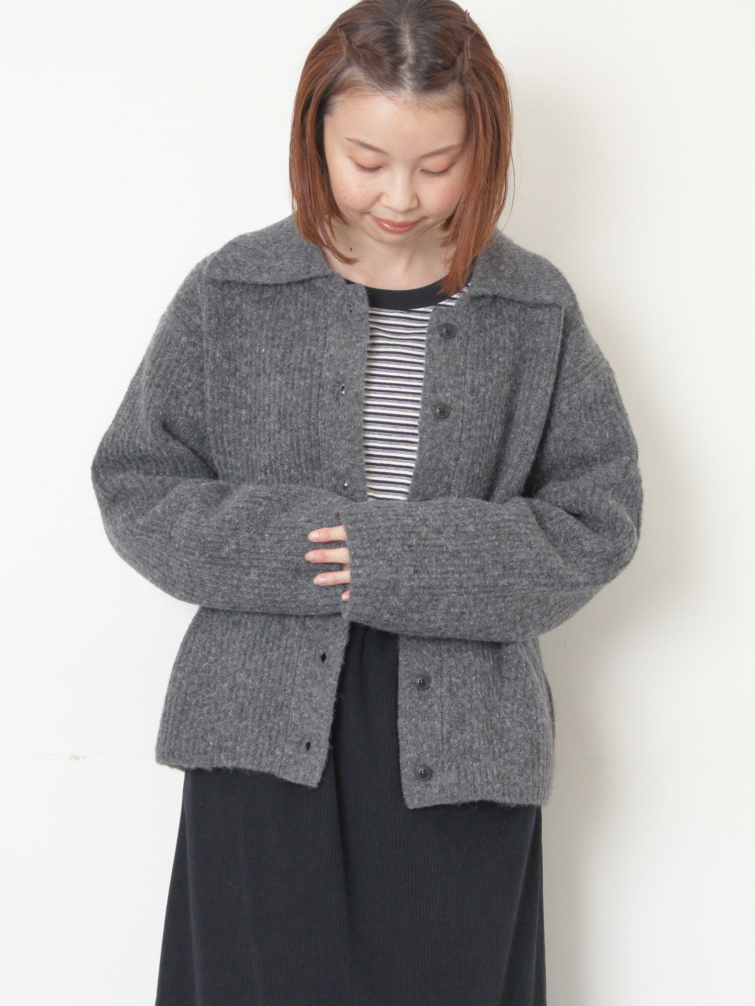 襟付ニットカーディガン