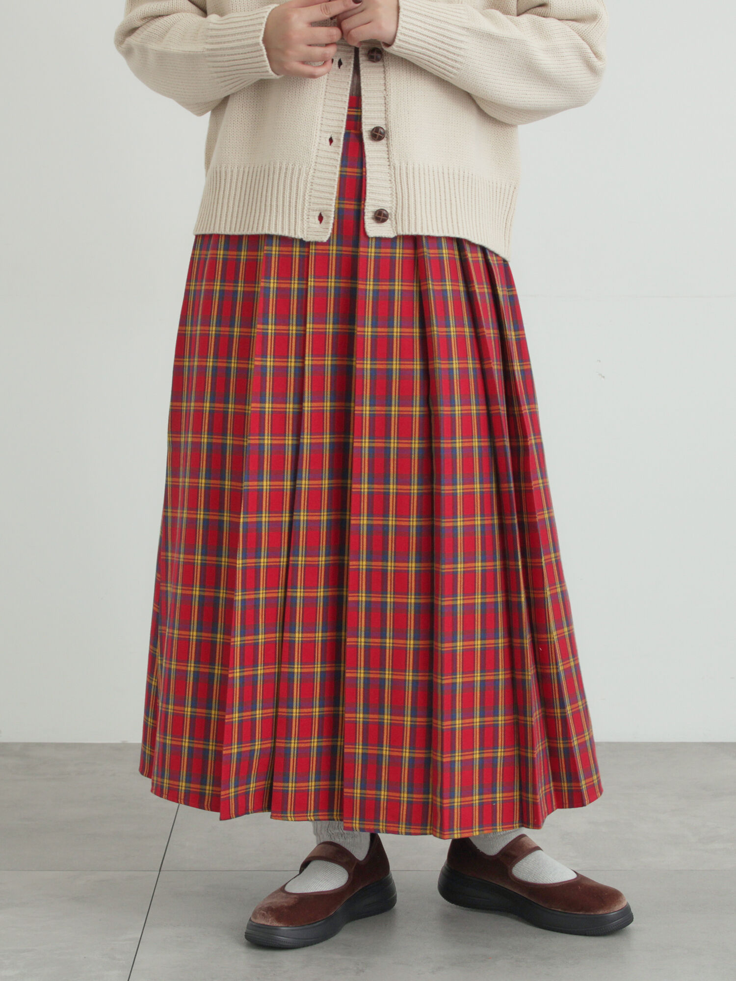 とても肌触りが気持ちいいシャギーニット カーディガンを着てみました🧶 落ち着いたらチャコールなので パッと目の引く赤チェックのスカートを 合わせてみました♡