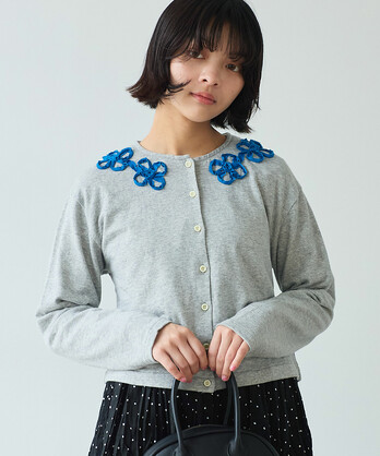 △〇 くるくるはなテープ刺繍 カーディガン