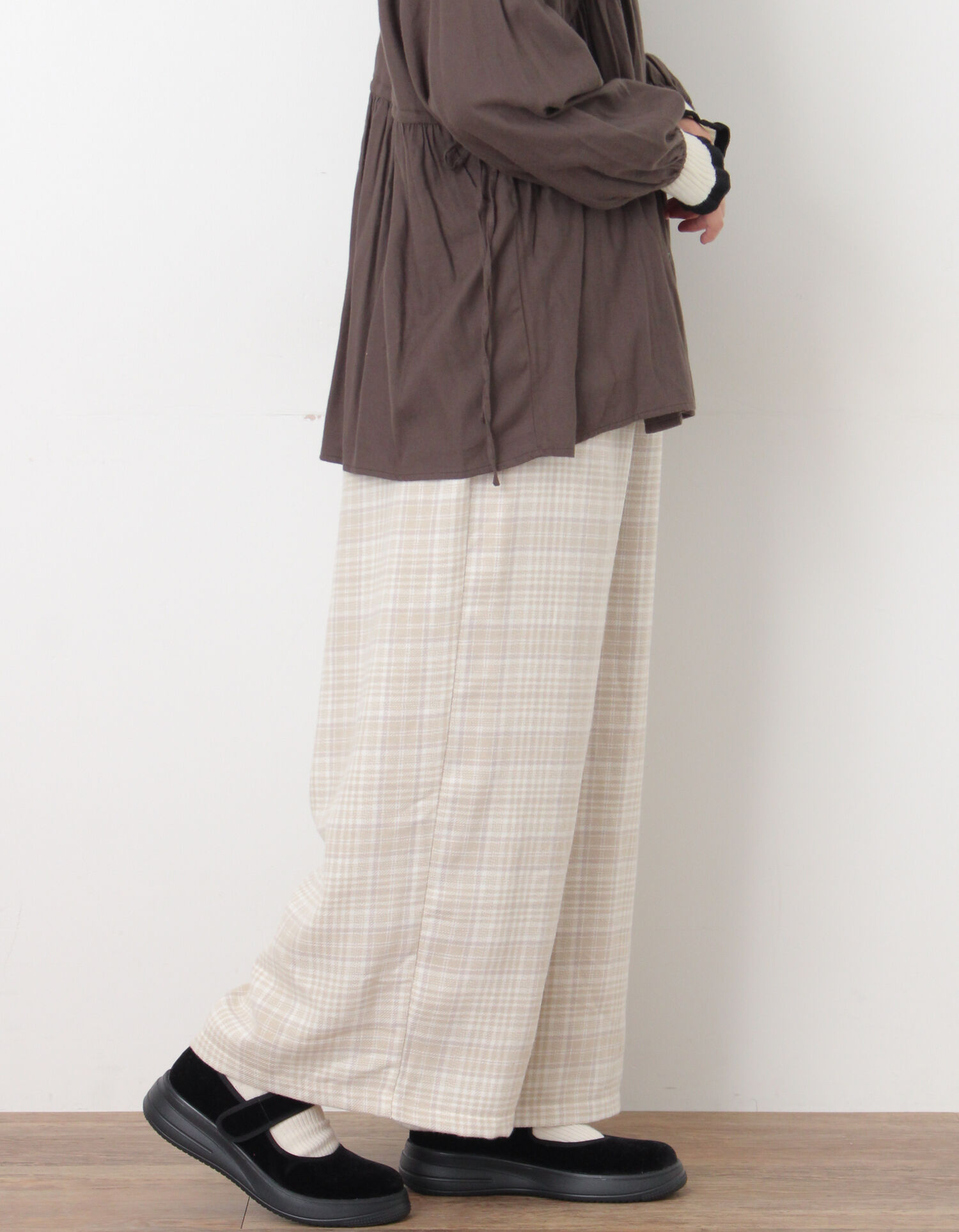 【M/Lサイズ】チェック柄ワイドパンツ