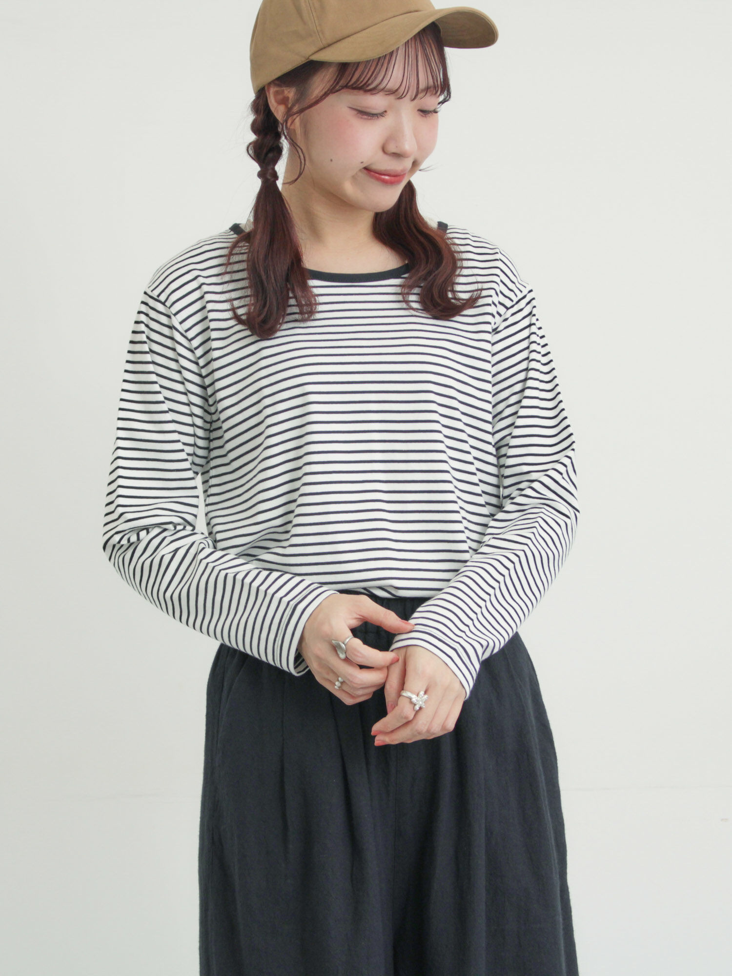 大人ナチュラルコーデ🩶 総刺繍が綺麗なブラウスにクロスリネンの パンツを合わせてきてみました インナーにはあえてボーダーTシャツを 合わせて少しカジュアル要素で 抜け感を足してみました✨