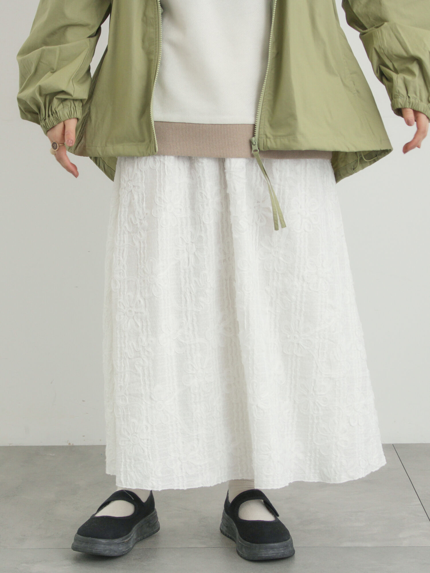 花柄テープ刺繍フレアスカート