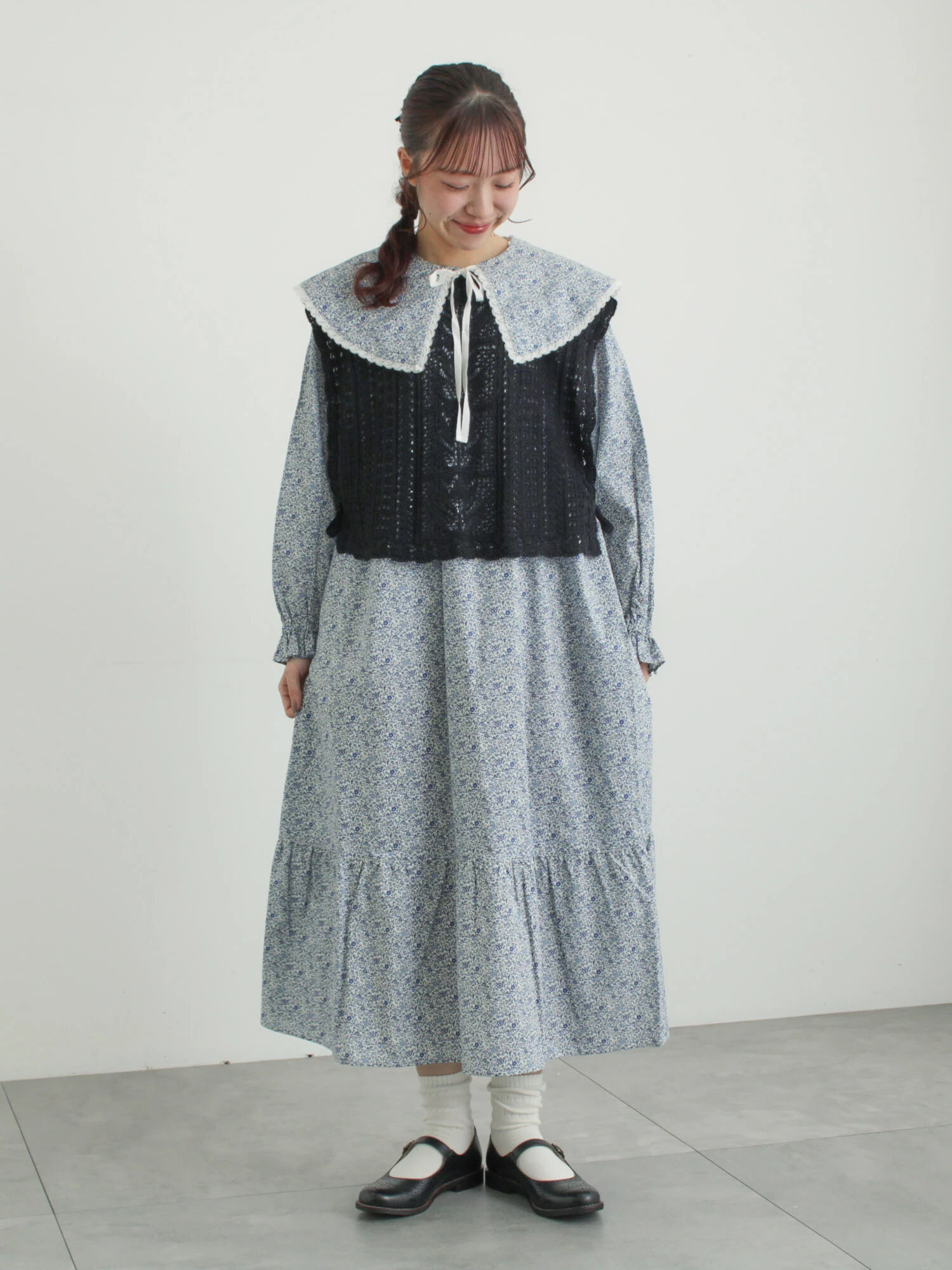 リバティの新作ワンピースをしてみました💐 リバーシブルのつけ襟がとてもかわいく 着回しにも活躍しそうです…♡ 着やすい小花柄なのでこれまで リバティ柄を着たことない方でも 挑戦しやすいデザインです♪