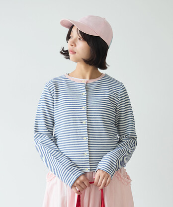 〇 インレーボーダー クルーカーディガン
