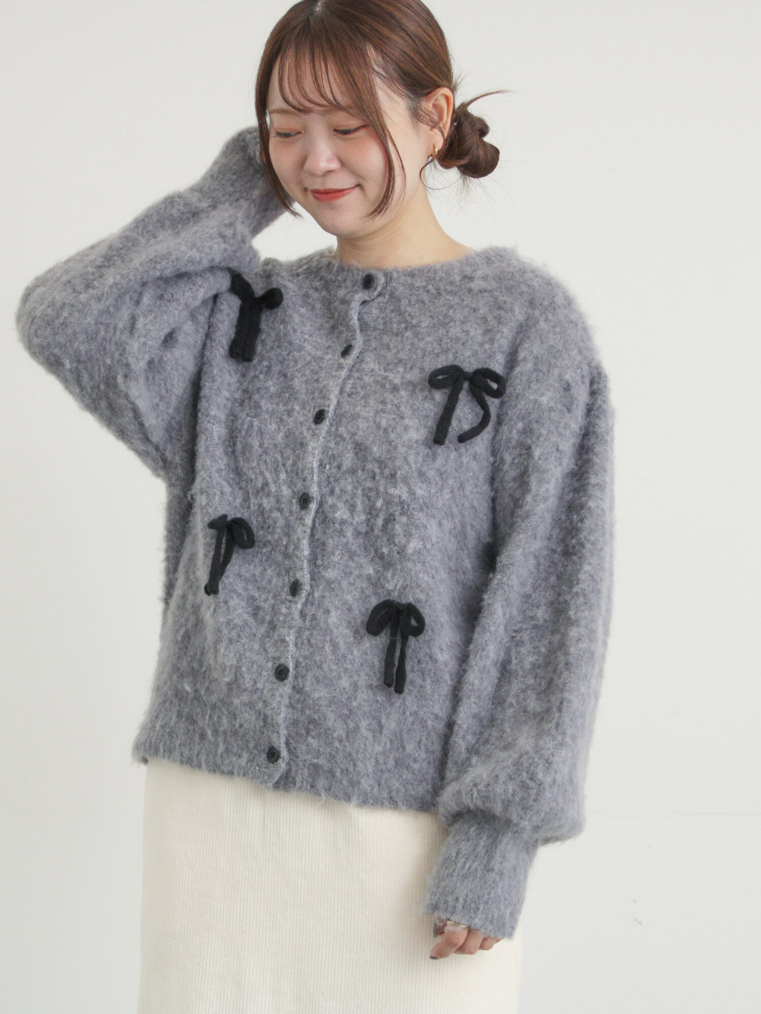 リボン付きニットカーディガン