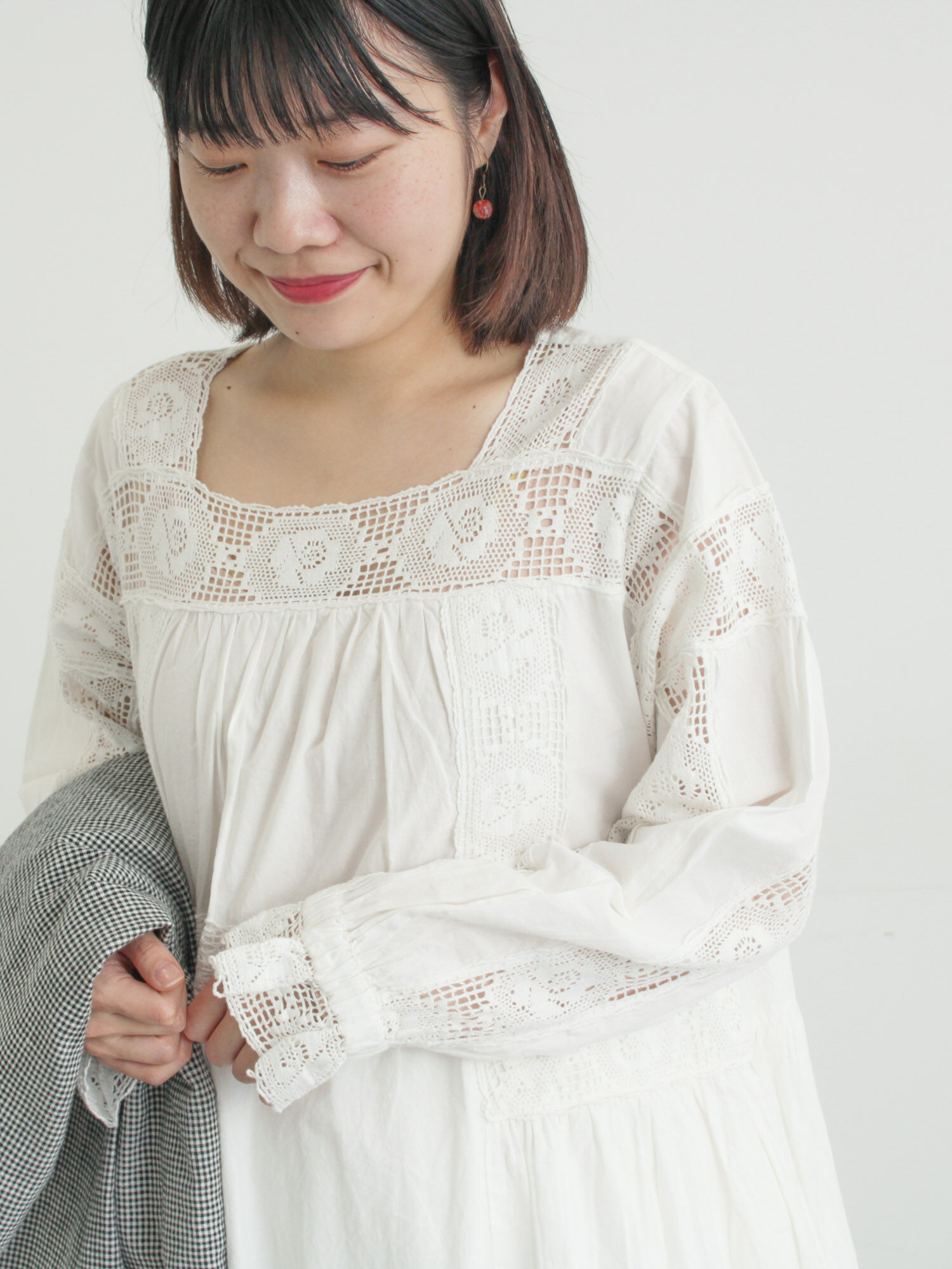 大人気のローズ柄レースのワンピースを カジュアルな合わせで着てみました✨ 真っ白のワンピースは甘くなりがちですが ボーダーやデニムと合わせるだけで 一気に雰囲気を変えた着こなしになります☺️