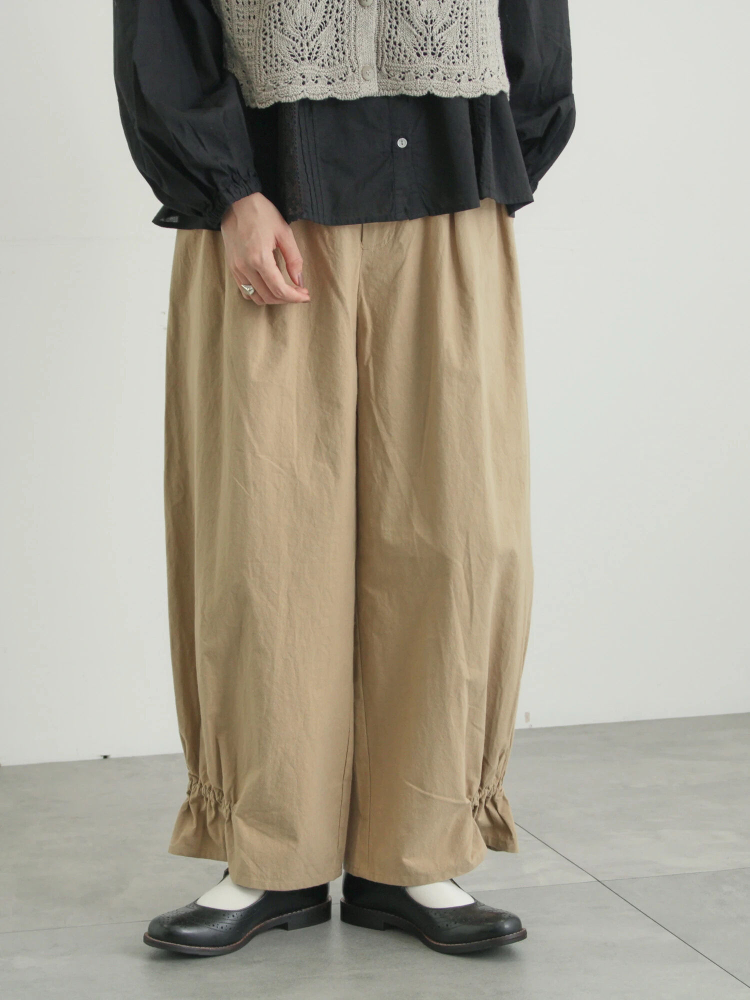 LUCUA1100店限定ブラウスの着回しコーデ𓆸 ミント色の綿麻ニットベストと合わせた ナチュラルな春コーデ🌷 こちらのパンツは馬布なので厚みありつつ 柔らかく肌触りの良い素材となっています☺︎ 裾のサイドだけゴムになっているのもかわいいポイント💡 ペチパンツとして合わせてもとてもかわいいです♪