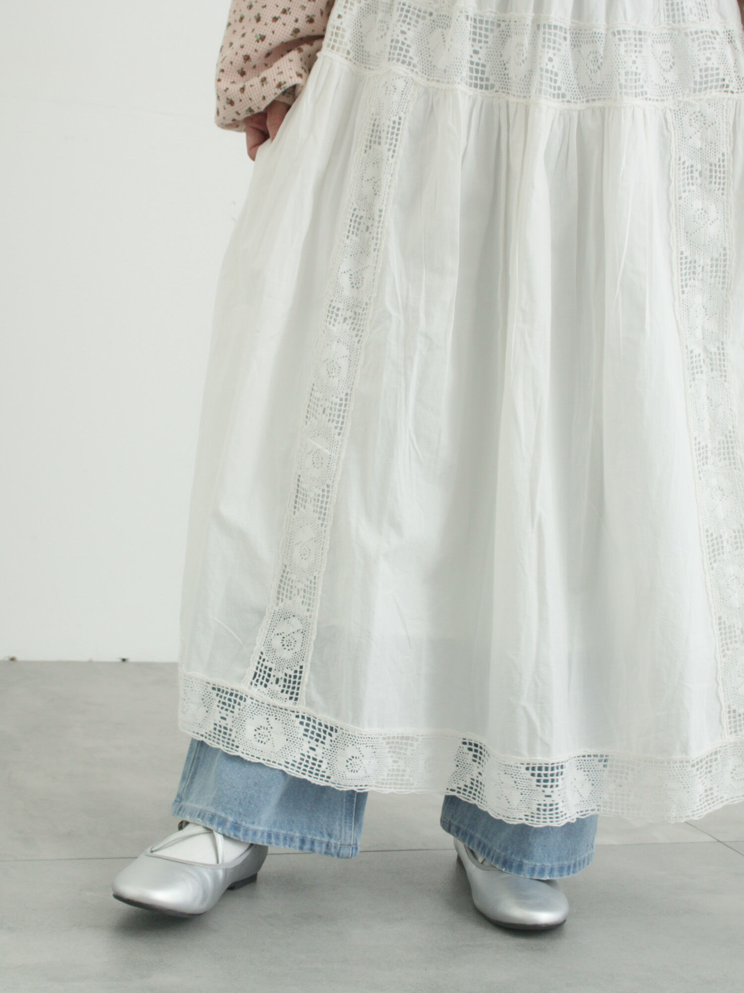 Cross×Staffシリーズのブラウスを使用したコーディネートを組んでみました♩ 花柄レースの襟とスカートのローズ柄レースを合わせた春にぴったりの可愛らしい組み合わせです💐