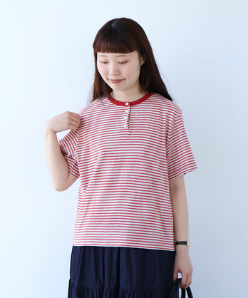 【予約販売】○ マルチボーダー ヘンリーネック Tシャツ
