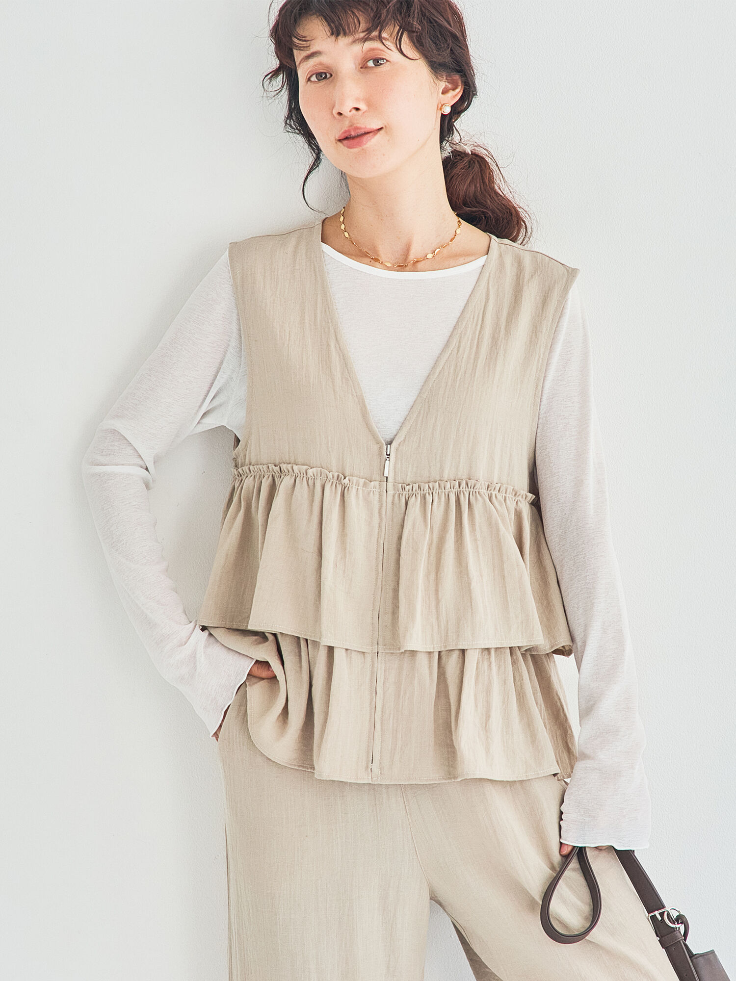(セットアップ可)フリルジップベスト