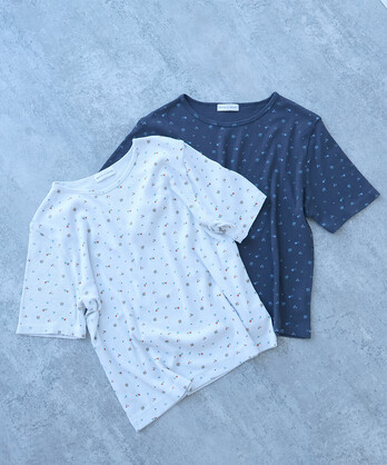 ○ ブルーベリーと小花プリント Tシャツ