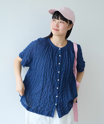 ○ shirring mini check チュニックブラウス