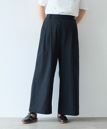 ○ リネン / コットン ナチュラルトリプルワッシャー 2タック パンツ
