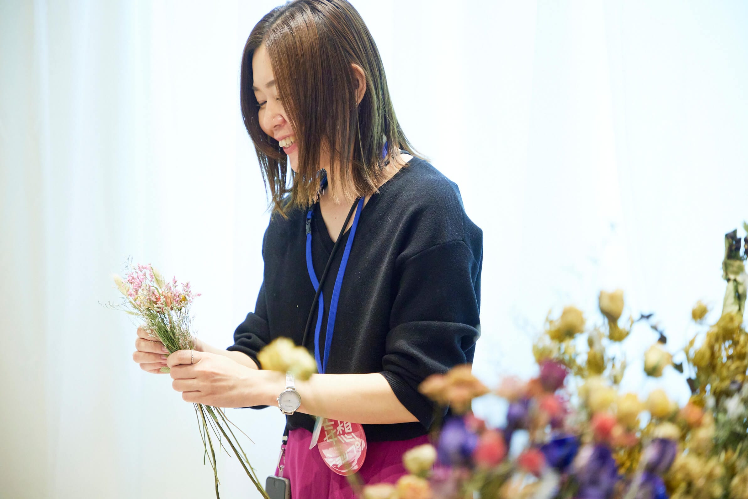 お花関係の仕事は長いですが、自分に自信がなくもやもやしていた頃、コロナ禍に入って健康に気を遣うようになり、環境に優しいことにも興味を持ち始めました。その頃、「花のロスを減らし、花のある生活を文化にする」というミッションを掲げた「RIN」を知り、私もその循環の中に入ってお花の魅力を伝えたいと思ったのがきっかけです。