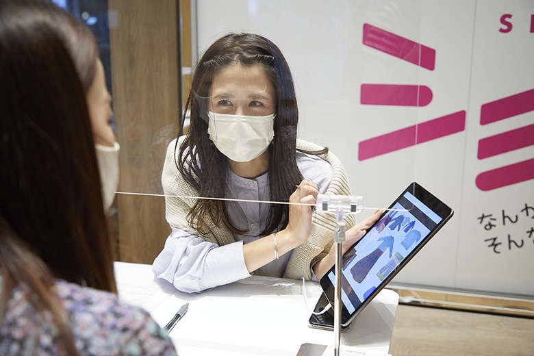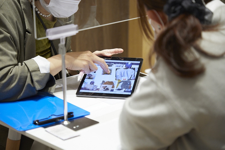 - スタイリストの中から担当を1人選び、ご予約いただきます。ご予約後、お悩みなどをお伺いするアンケートをお客様のメールアドレス宛にお送りいたしますので、事前に、アンケートのご回答と、ご自宅のクローゼットにあるお洋服(10アイテム程度)のお写真をお送りいただきます。その後、ご予約時間にご来店いただき、お話をさせていただきながら、頂いた写真たちを組み合わせ、コーディネートを1週間分ご提案させていただきます。