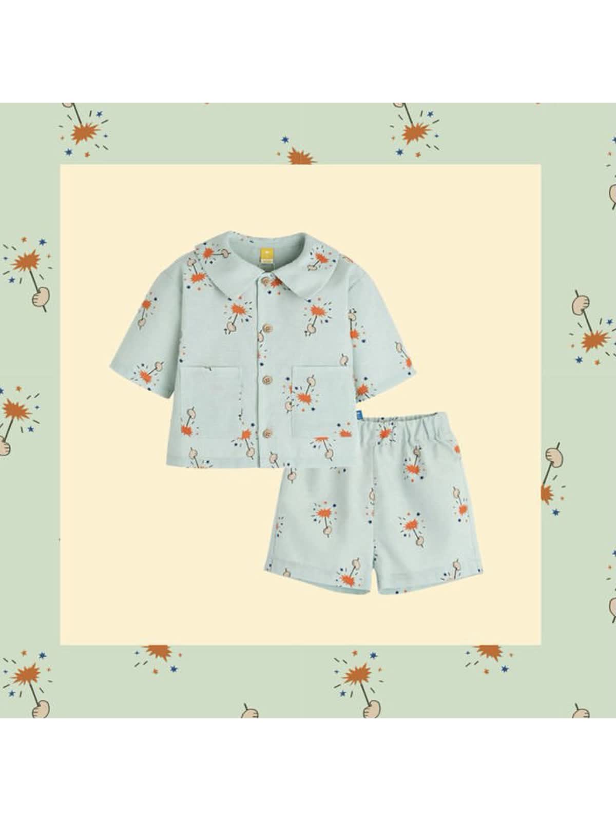 花火プリントのシャツ型セットアップ✨