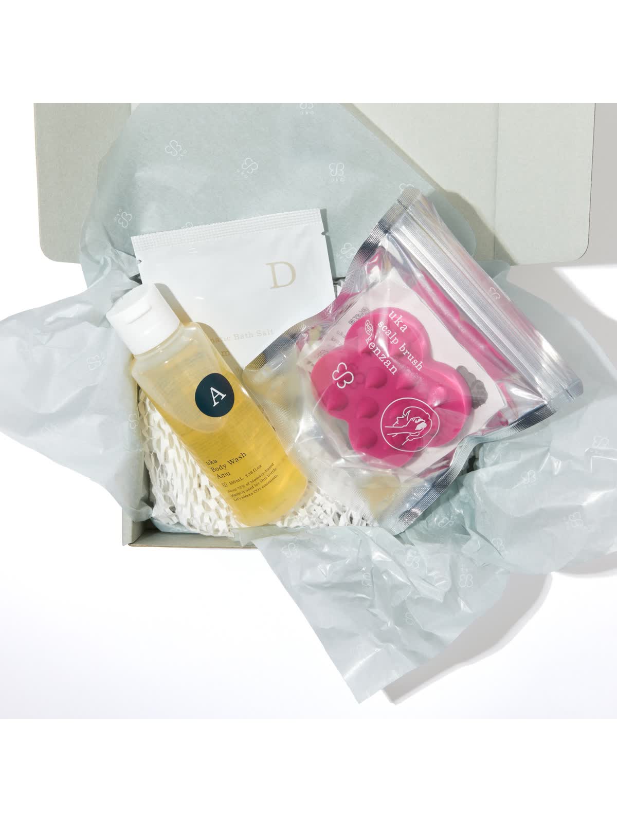 母の日キャンペーンとして、ukaストアでは2種類の異なるセットが登場します。各セットにつきuka アロマティックバスソルト1点をプレゼント。