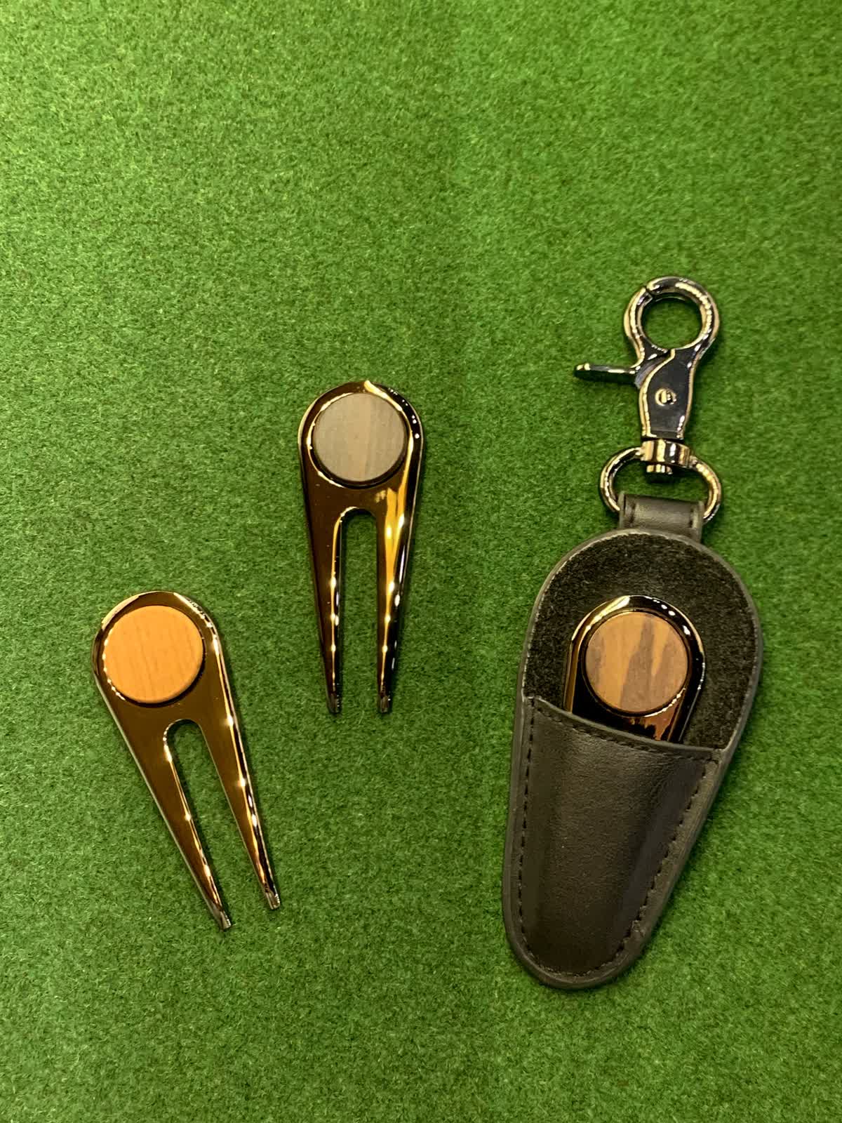 ゴルファーのエチケット&マナーに必要なアイテム、木製グリーンフォーク、グリーンマーカー「Golf Green Fork&Golf Marker」