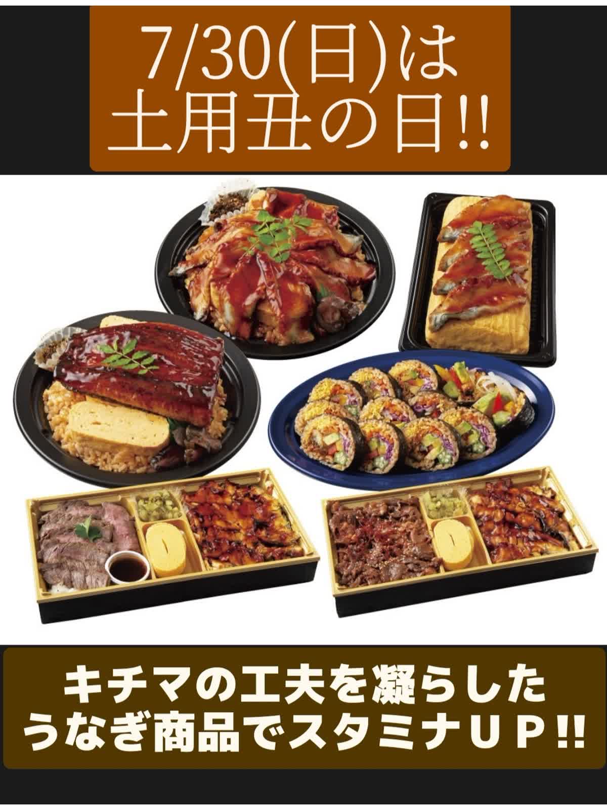 ルクア フードホール B2F キッチン&マーケット キチマの土用丑が熱い! 店内奥へお進み下さい♪ デリカコーナー、畜産コーナー、 魚と海鮮鮨酒場等、それぞれが工夫を 凝らした鰻、うな重、惣菜を展開します!! 店内自慢の出汁巻きを使った う巻きや丼、 鰻を入れたキンパ、 黒毛和牛と一緒になったうな重、 丑と牛をかけてスタミナメニューが登場する等、 見ても食べても美味しそうな うなぎ商品が今年も続々登場します! 当日のご来店を心よりお待ちしております!! ショップニュース⼀覧