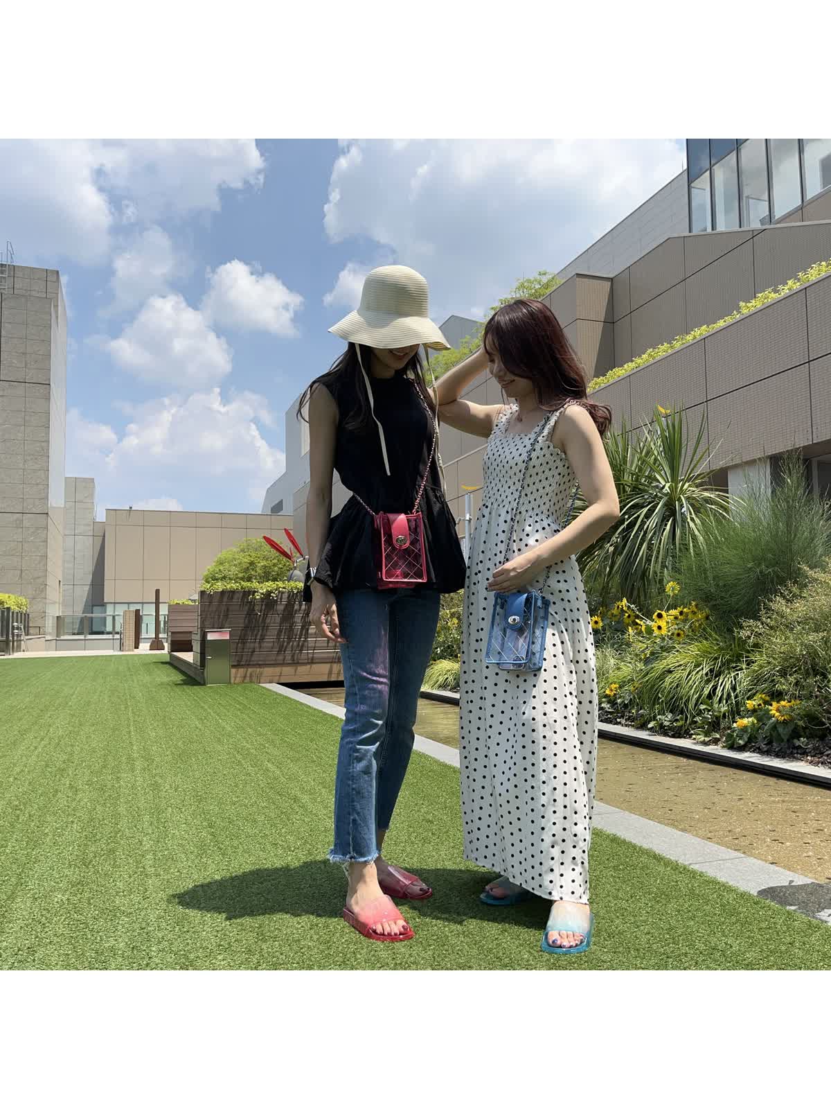クリアなシャワーサンダルと合わせたミニバッグ💕