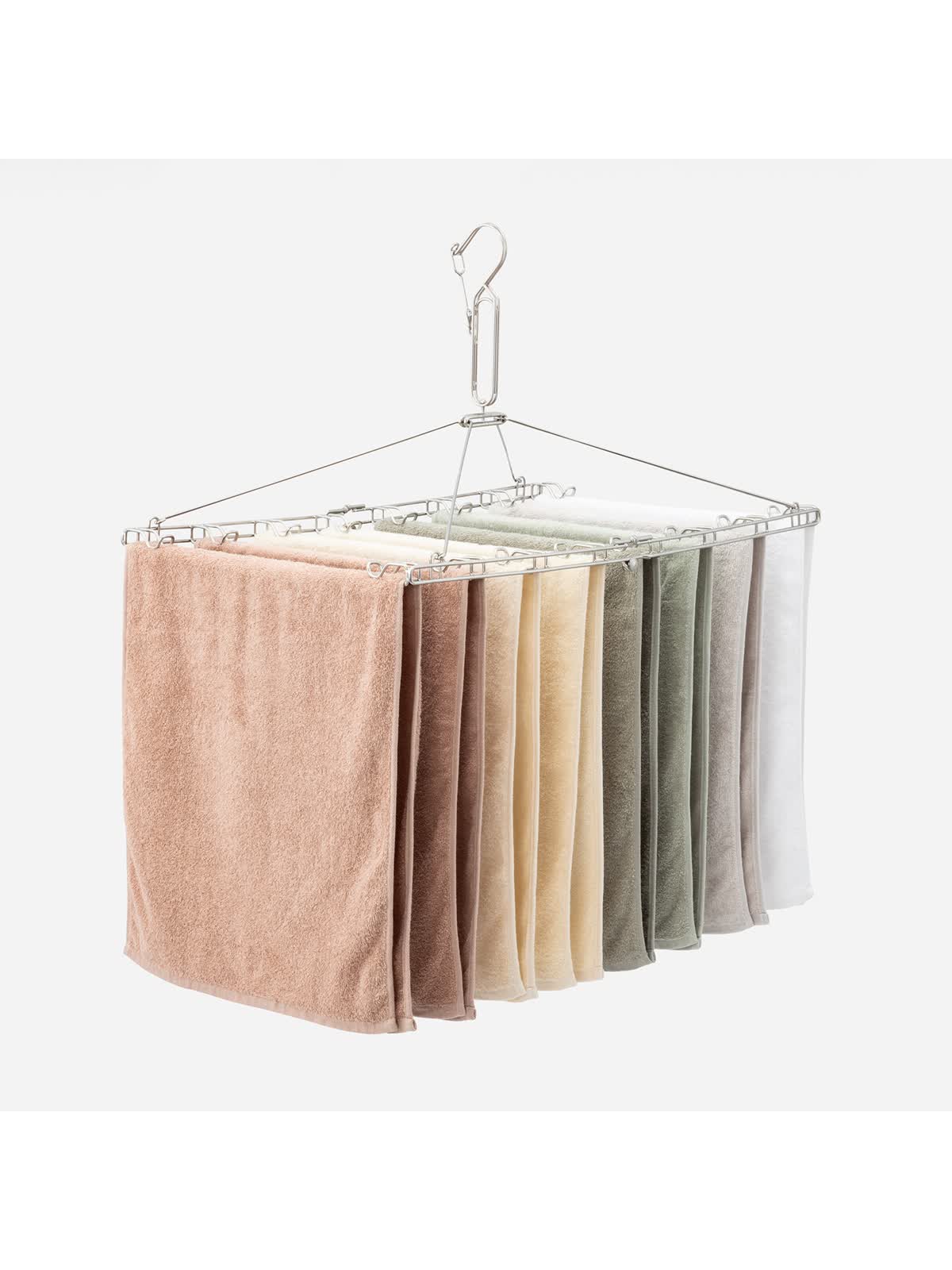 パラソルハンガーやピンチハンガーでタオルを干した際の「干すスペースが大きい」「ピンチが余ってもったいない」「乾きにムラがある」など、不満点を解決することができます。