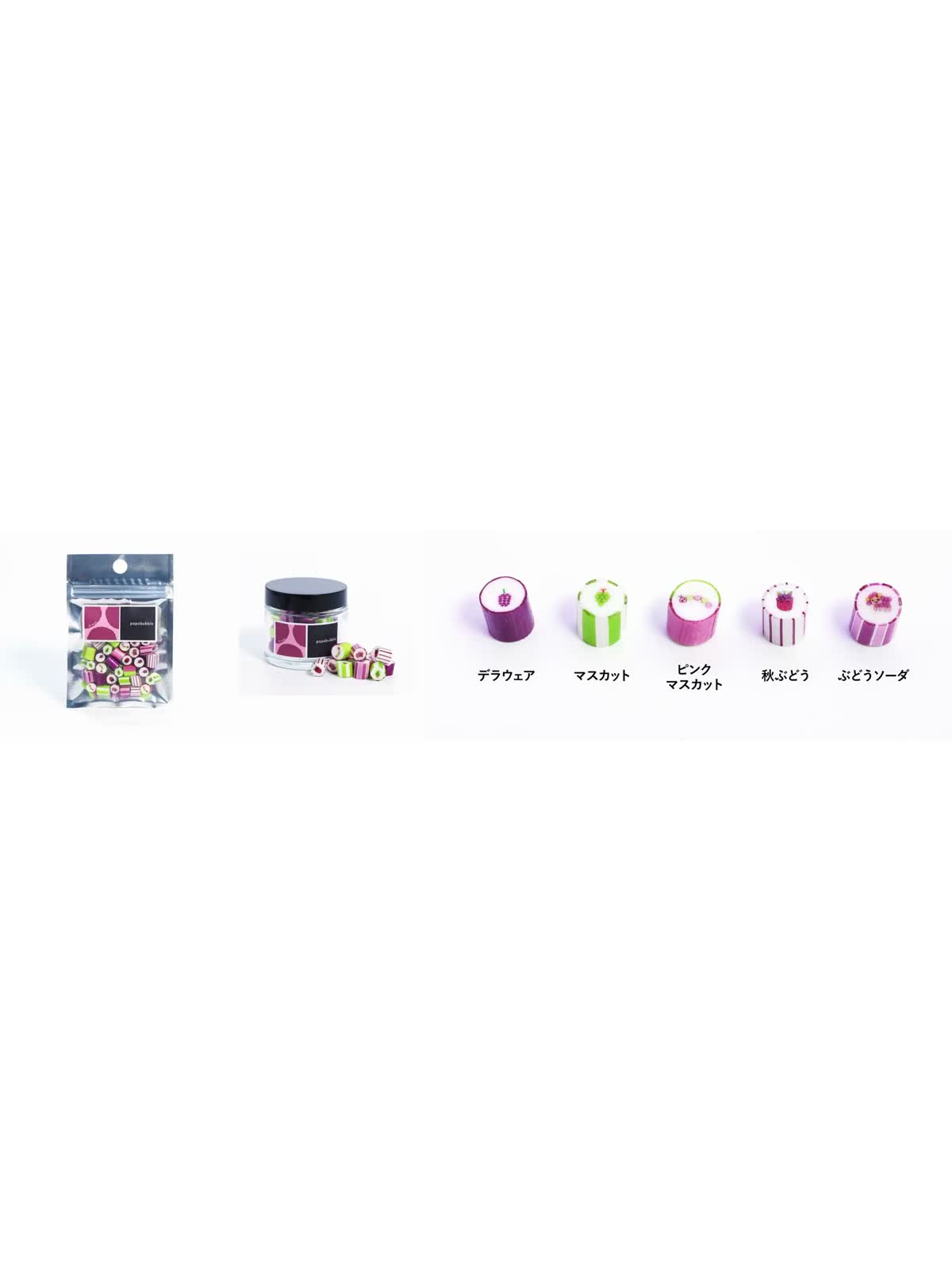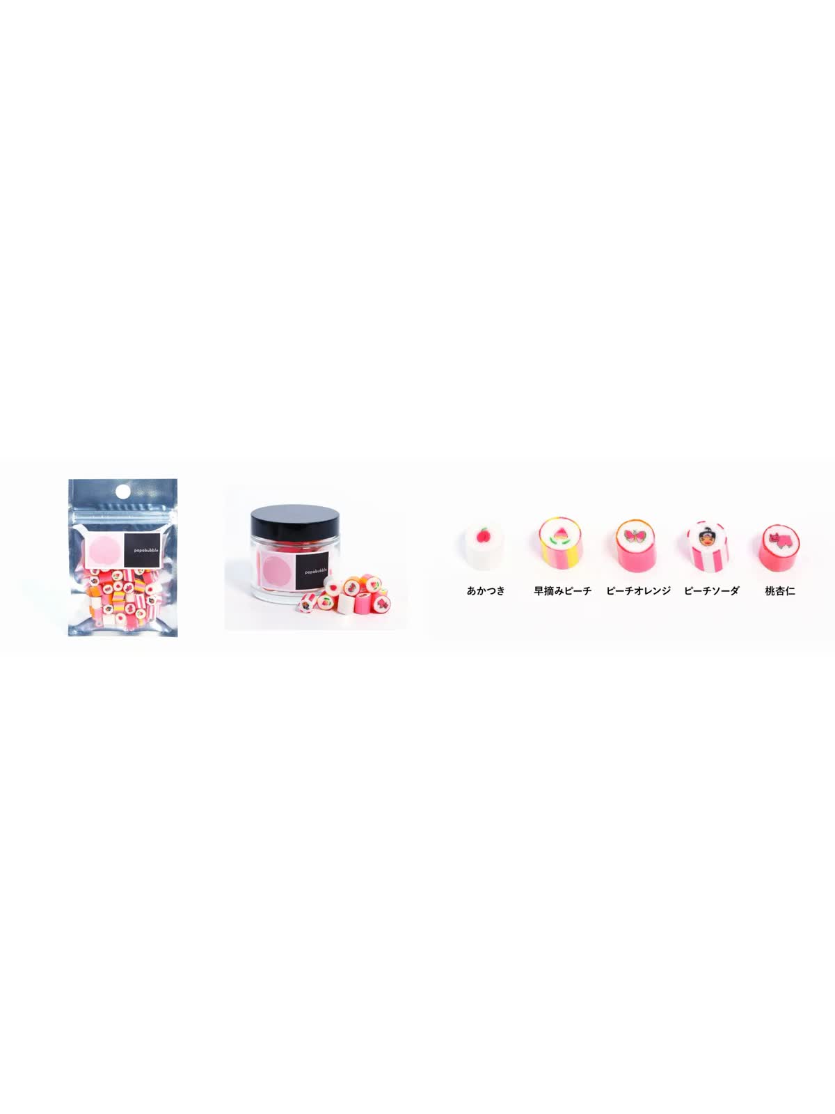 スイーツとしても今特に人気が高いももにちなんだ、5種類のフレーバーで構成されたキャンディミックスです。最高峰の桃として知られるあかつきを再現するために、ジューシーさをとことん追求。杏仁フレーバーと掛け合わせて作った桃杏仁も、必見の味に仕上がっています。また、ピーチソーダの絵柄に使われている桃太郎や、職人こだわりのグラデーションが施された早摘みピーチなど、可愛らしいデザインにも注目です。