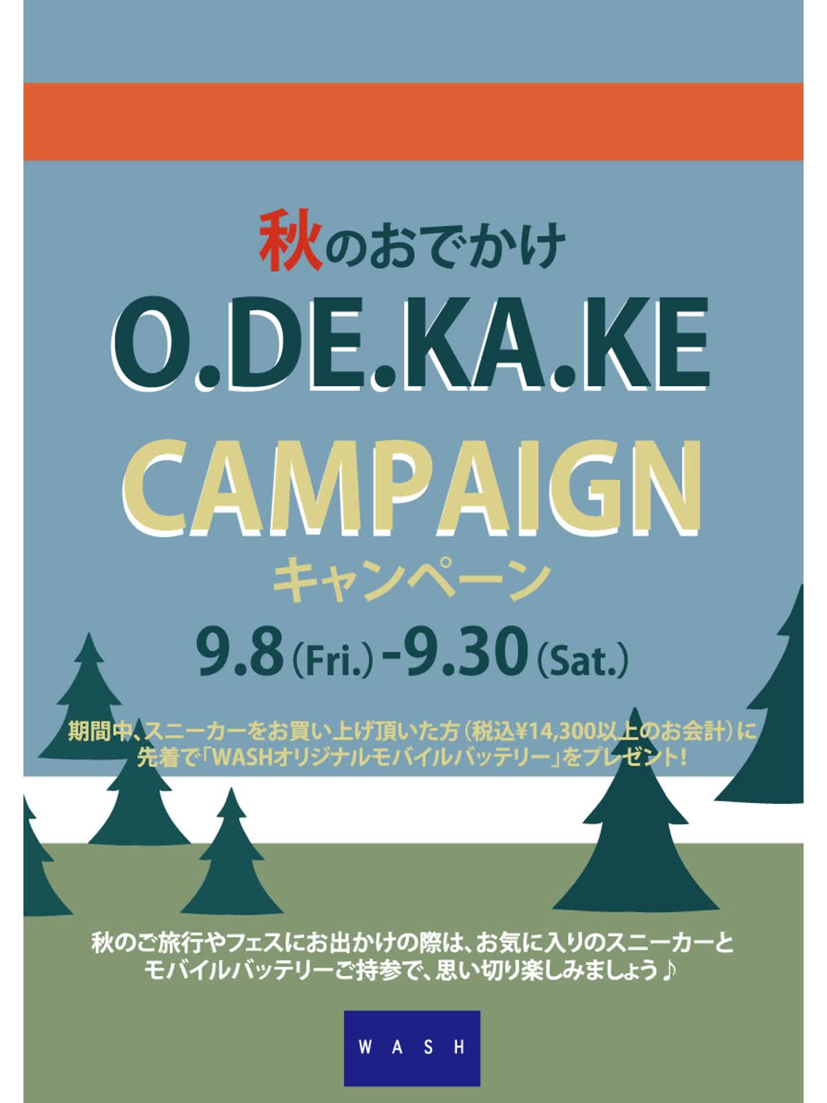 期間中、スニーカーをお買い上げ頂いた方(税込¥14,300以上のお会計)に先着で「WASHオリジナルモバイルバッテリー」をプレゼント!