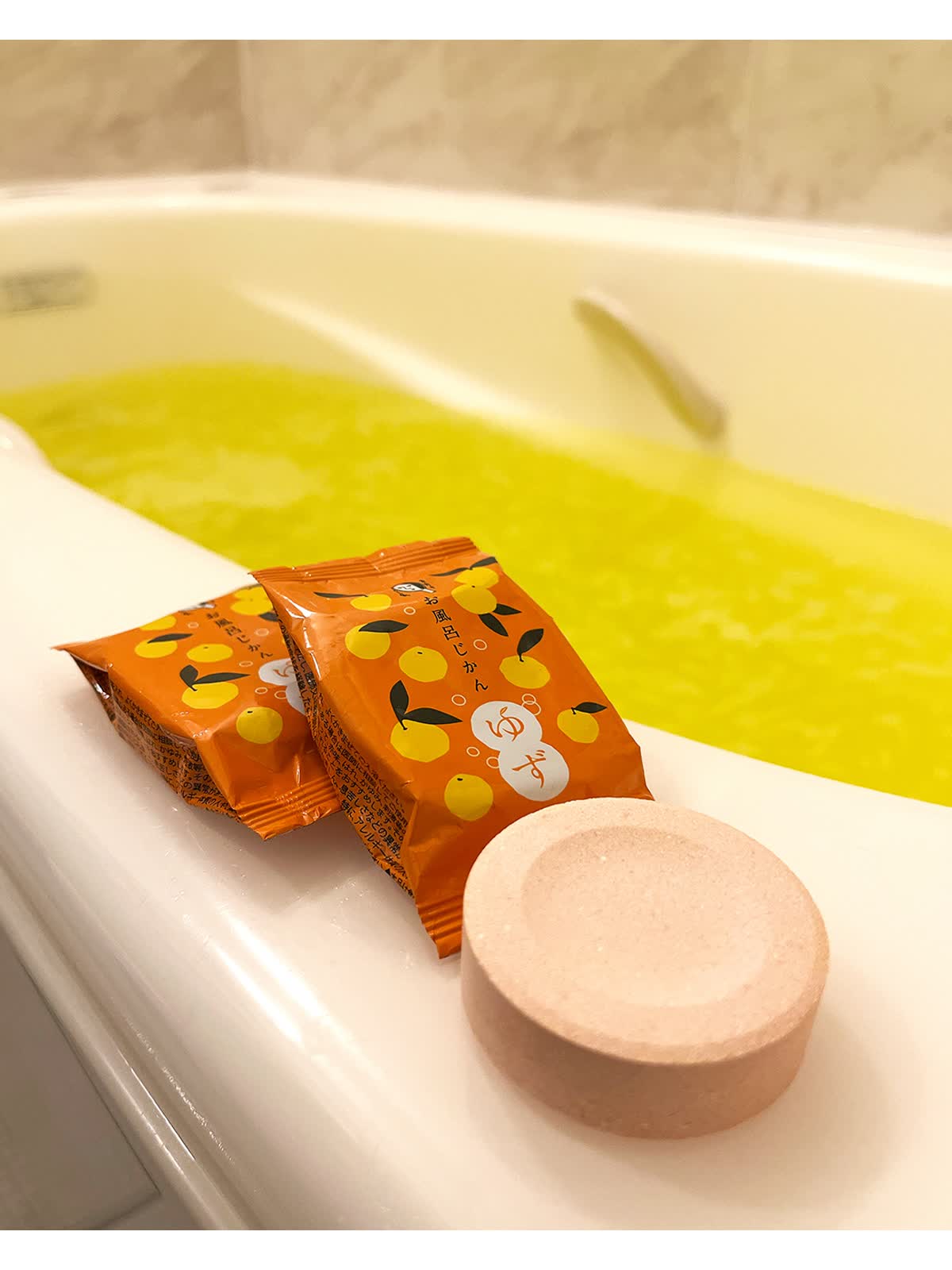 ユズ果実エキス配合、固形タイプの入浴料です。