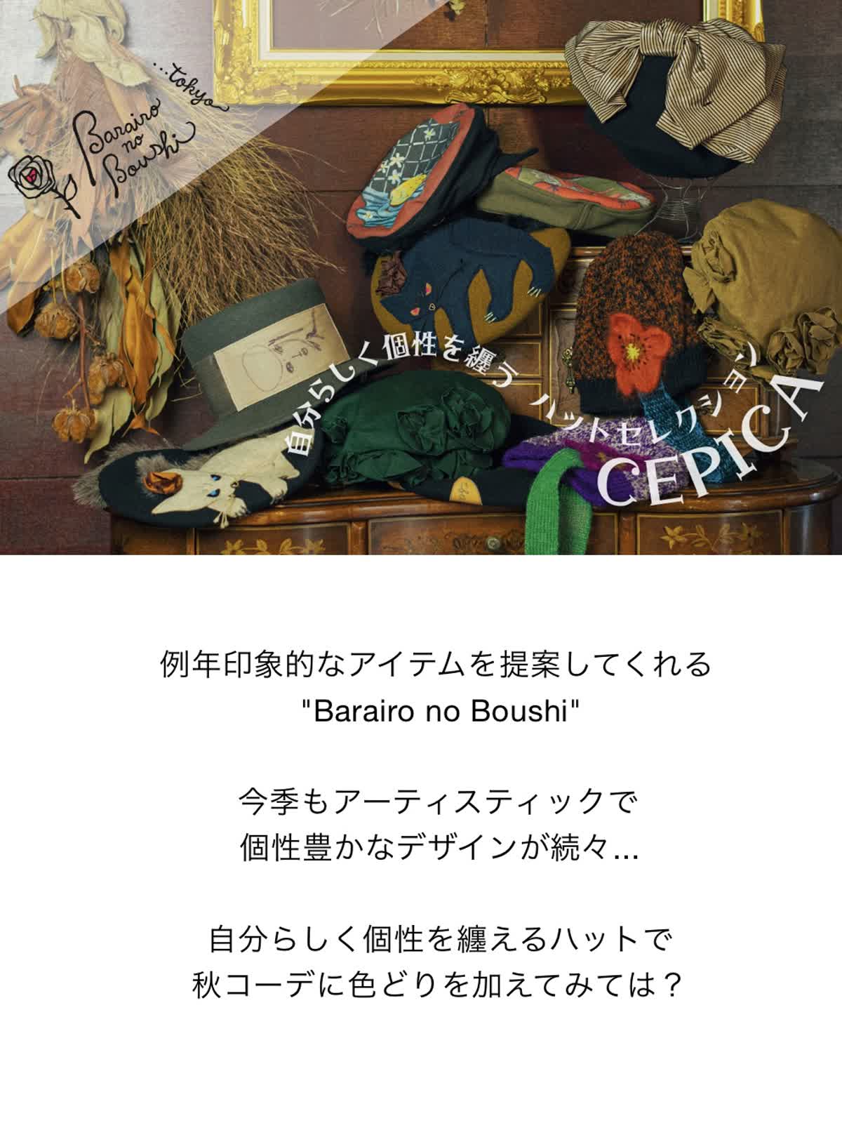 ルクア イーレ 5F ヴィドポッシュドゥセピカ 例年印象的なアイテムを提案してくれる "Barairo no Boushi" 今季もアーティスティックで 個性豊かなデザインが続々... 自分らしく個性を纏えるハットで 秋コーデに色どりを加えてみては? ショップニュース⼀覧