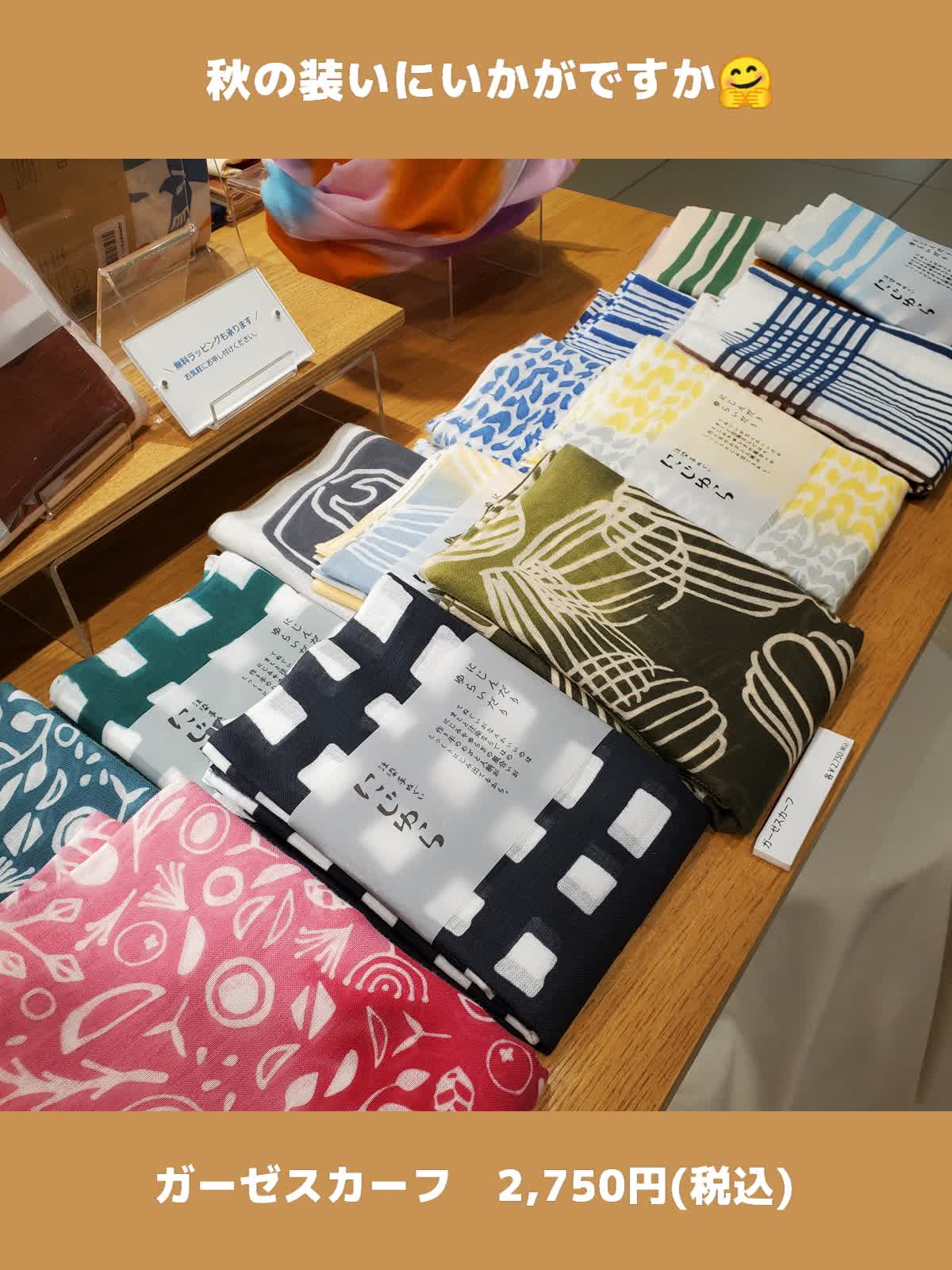 ルクア 9F 注染手ぬぐい にじゆら 少しずつ涼しい季節になってきましたね😃 にじゆらでは肌触りが柔らかく優しいガーゼスカーフを取り揃えています。 長さが180cmありますので、 ストール巻きにピッタリ✨ ガーゼ素材なので、程よく風通しもあり、 気持ちよく着用いただけます。 カラーやデザインも 様々ございますので、 ぜひ店頭にてご試着してみてください✨ ギフトにもオススメです🙆 皆さまのご来店をお待ちしております💓 ショップニュース⼀覧