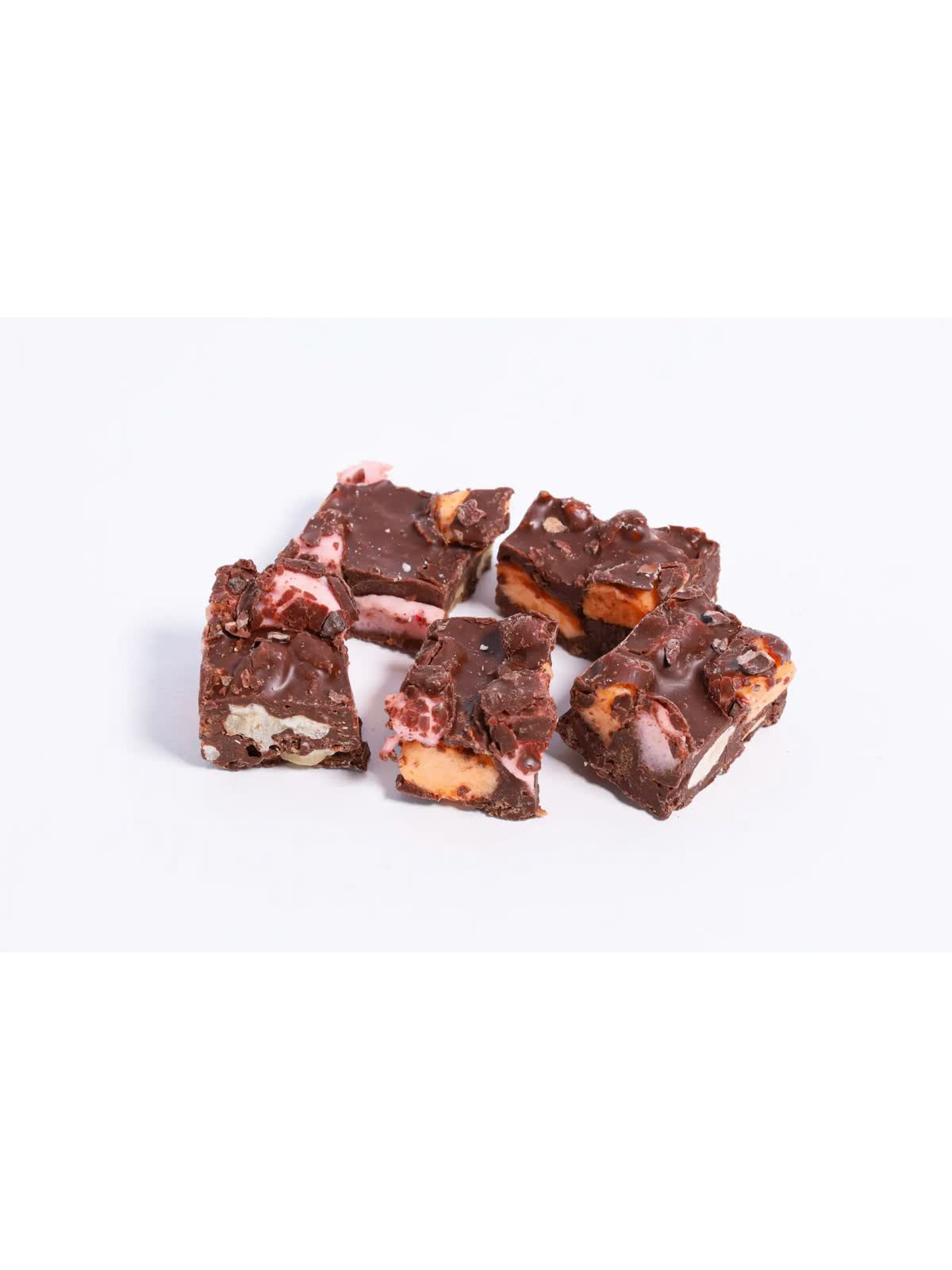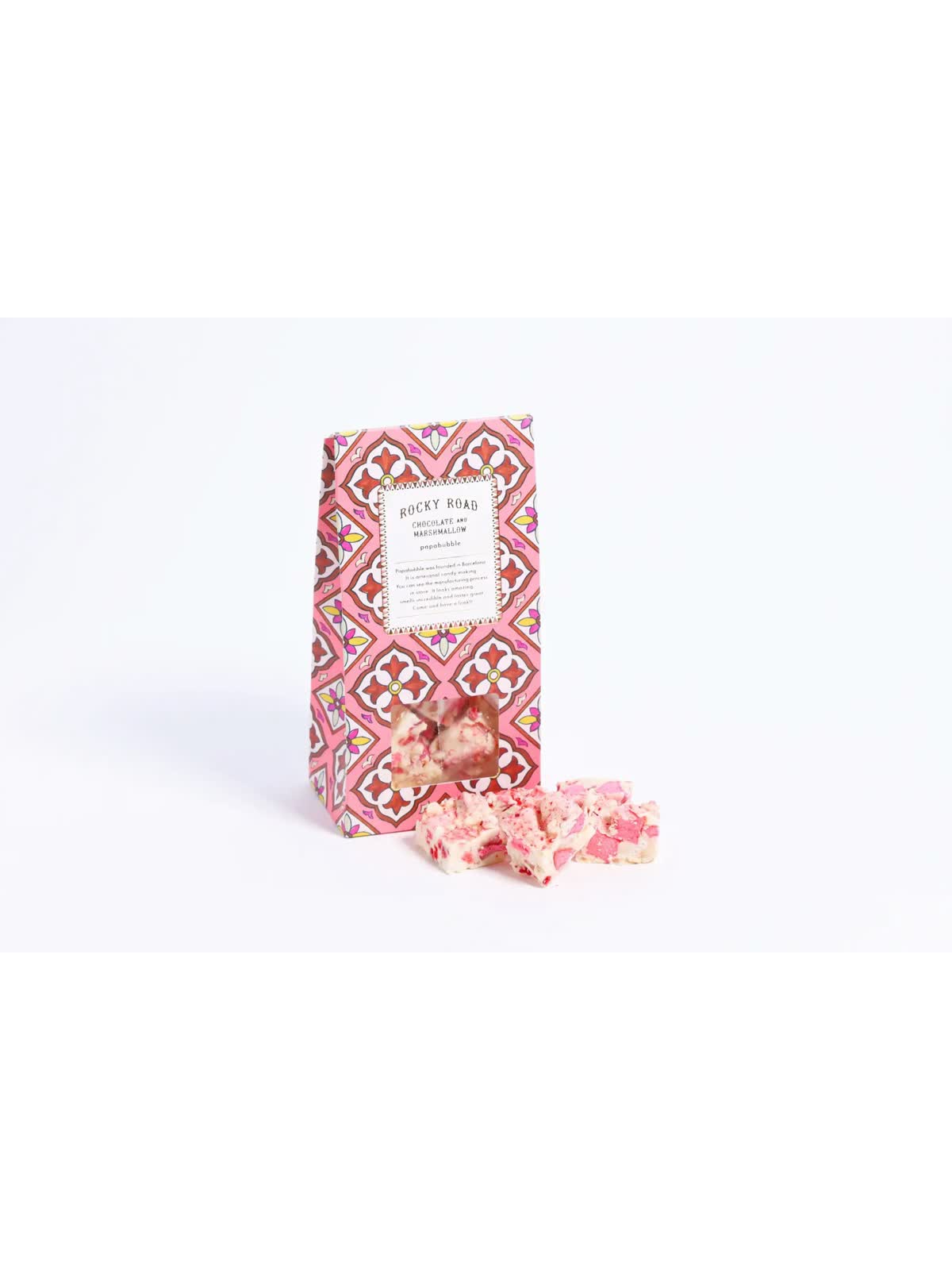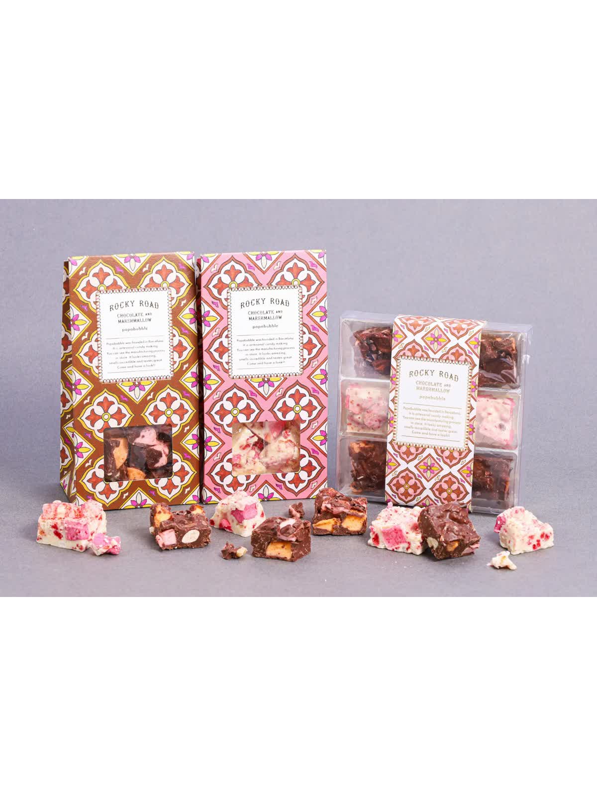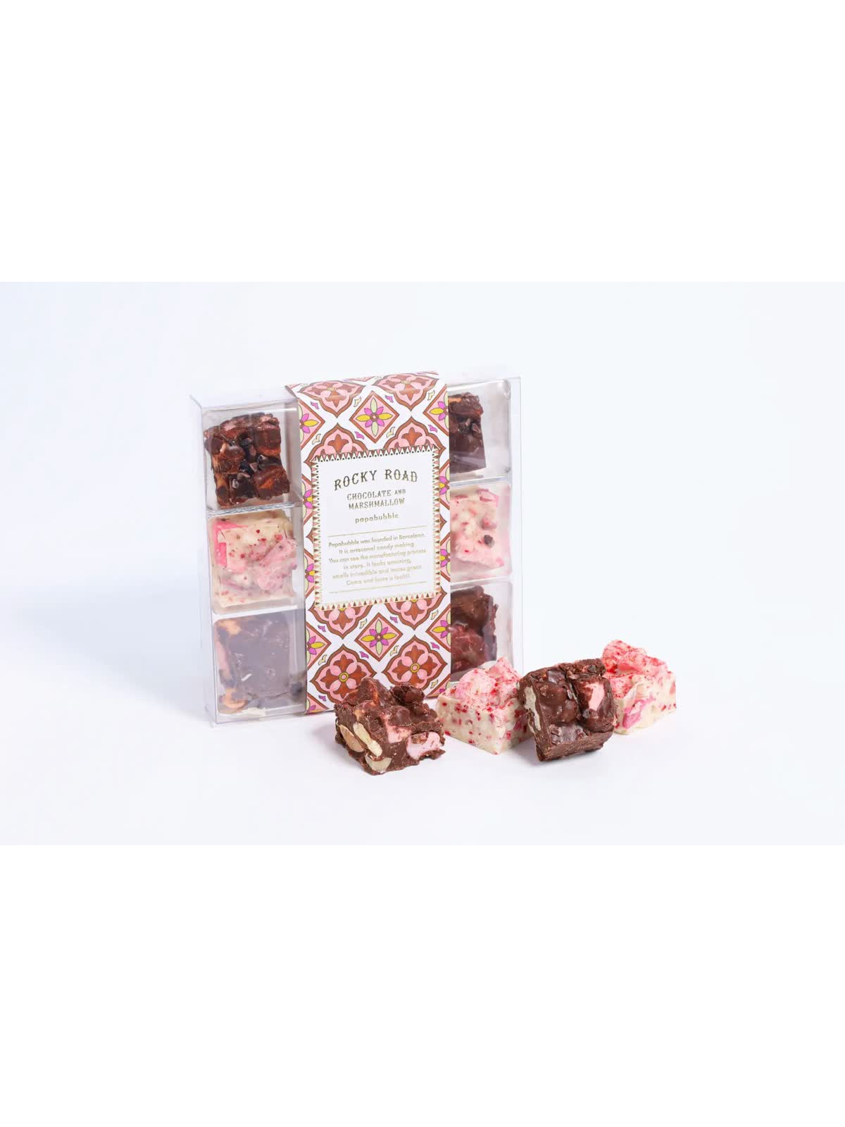 日本ではまだ馴染みの薄い「ロッキーロード」は、マシュマロ・チョコレート・ナッツを混ぜ合わせた、海外では人気の伝統菓子です。そのゴツゴツした様子から岩場の道に例えられたロッキーロードをパパブブレがアレンジ。今回のリニューアルを経てさらに美味しいお菓子が誕生しました。