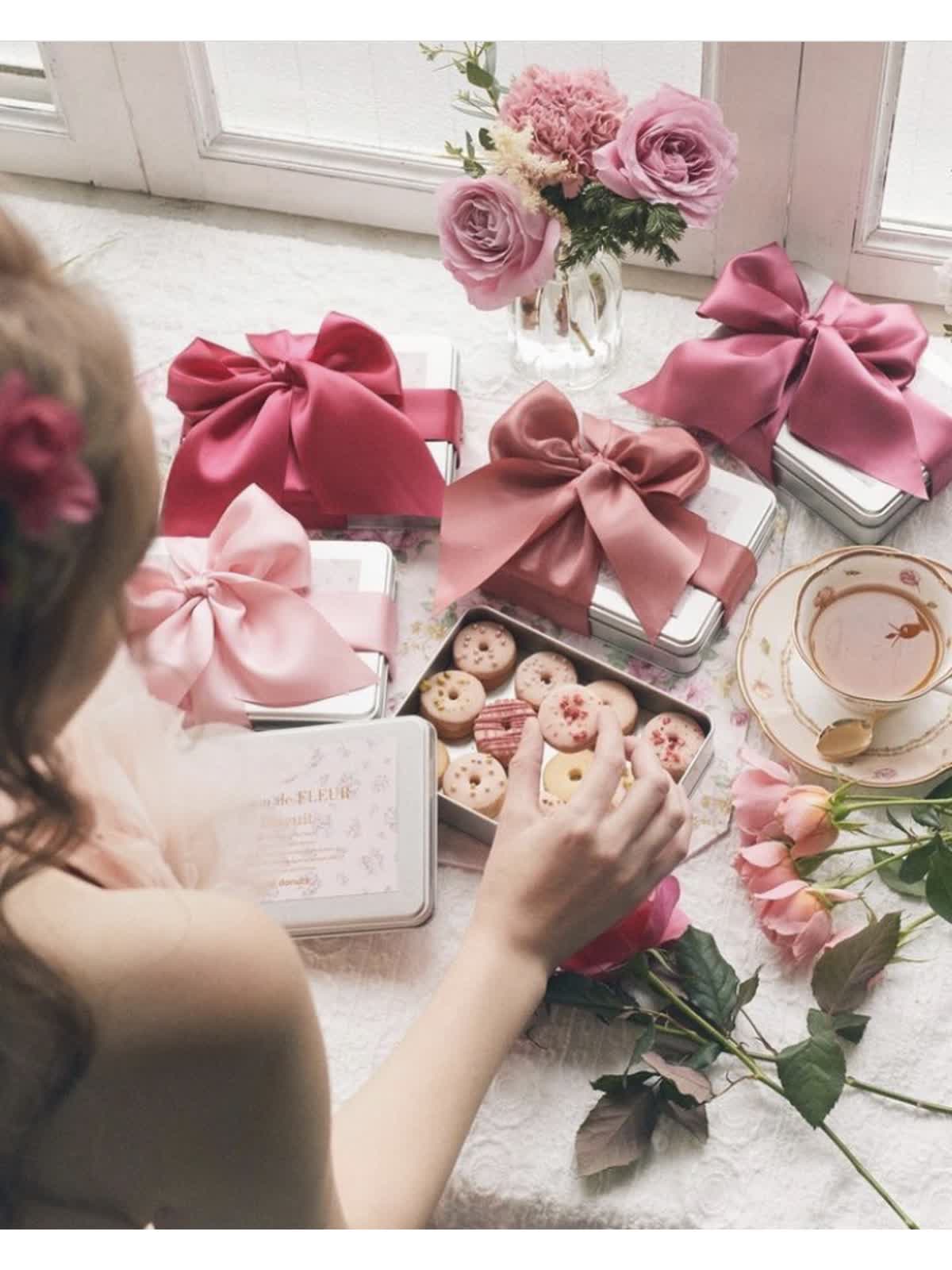 ラベルはコラボ限定の花柄デザインを使用し、ラッピングに添えた大きなリボンは、Maison de FLEURの定番商品「ダブルリボントートバッグ」の製造過程で余剰となってしまったリボンなどを使用🎀