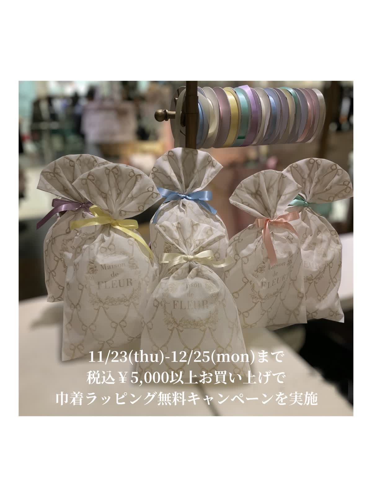 ルクア 5F メゾン ド フルール 11/23(thu)-12/25(mon)まで アウトレット店含む全国ショップにて 税込¥5,000以上お買い上げで 巾着ラッピング無料キャンペーンを実施中🎁✨ リボンのカラーは ・Ivory ・Pink ・Yellow ・Mint ・Purple ・Sax Blue の6色からお選びいただけます🎀 大切な人へのクリスマスギフトにおすすめです♪ ※無料ラッピングはギフトの方のみとさせていただきます。 ショップニュース⼀覧