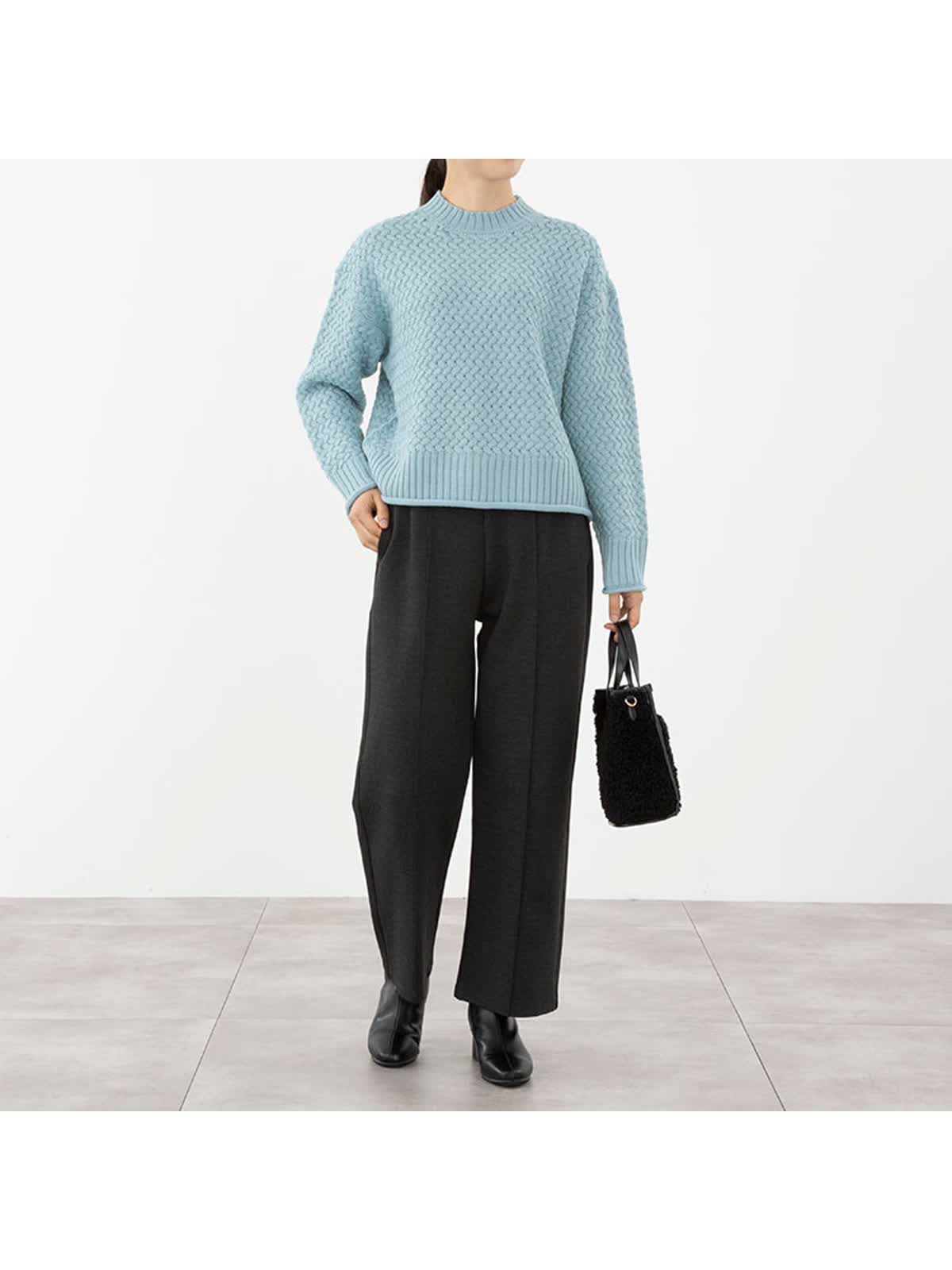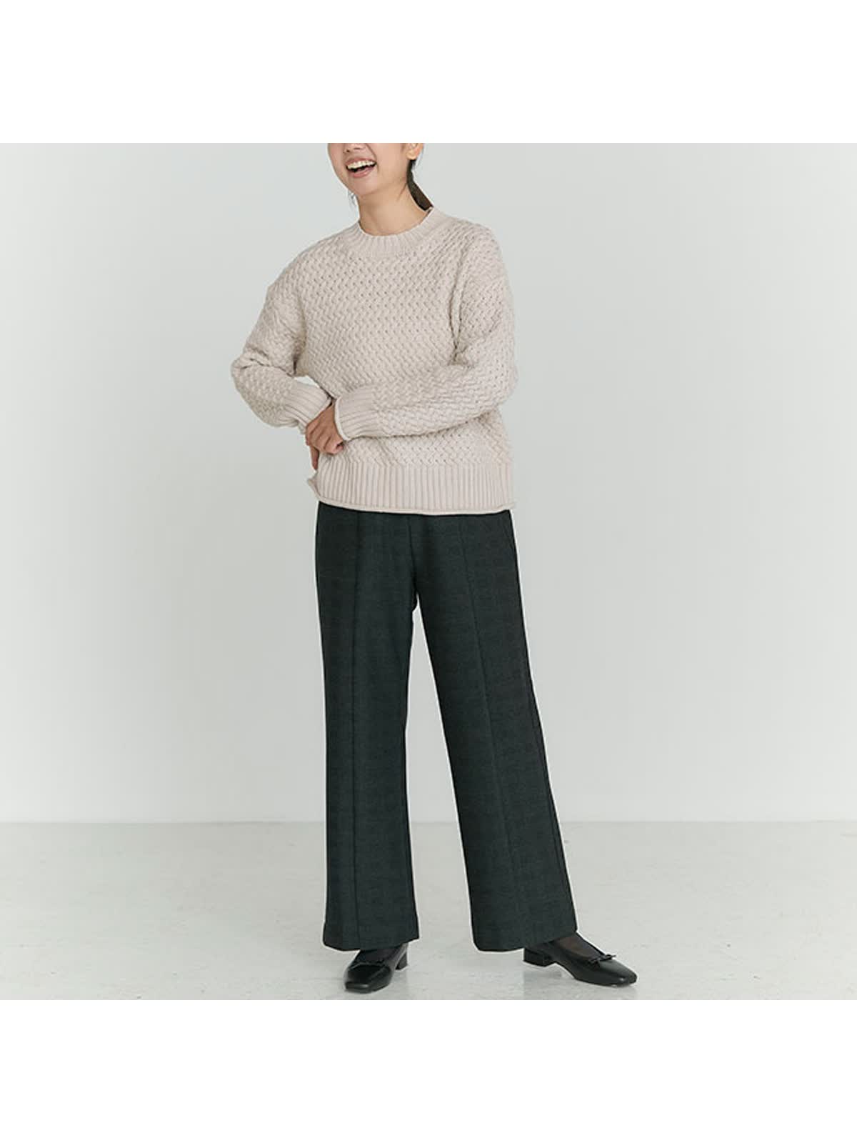 ・冬のムードを高めるバスケット柄編みのニットトップス