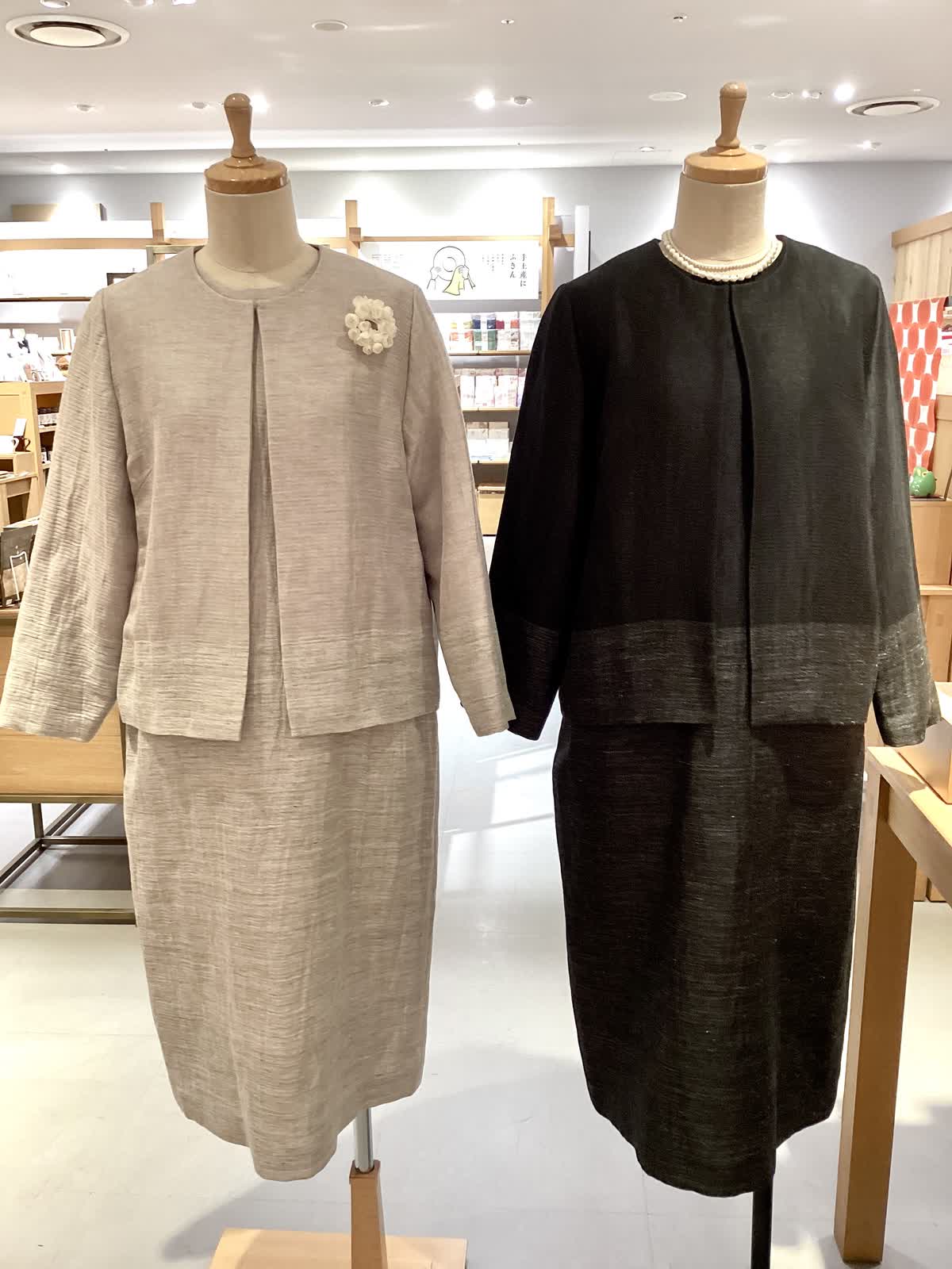 リネンキュプラの波皺(なみしぼ)ジャケットとワンピースは今年の新作。