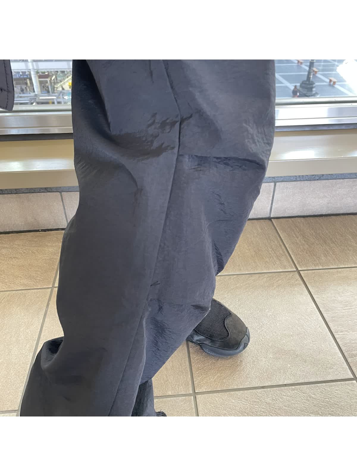 これくらい思い切った太さのナイロンパンツは夏の主役にもなりそうですね!