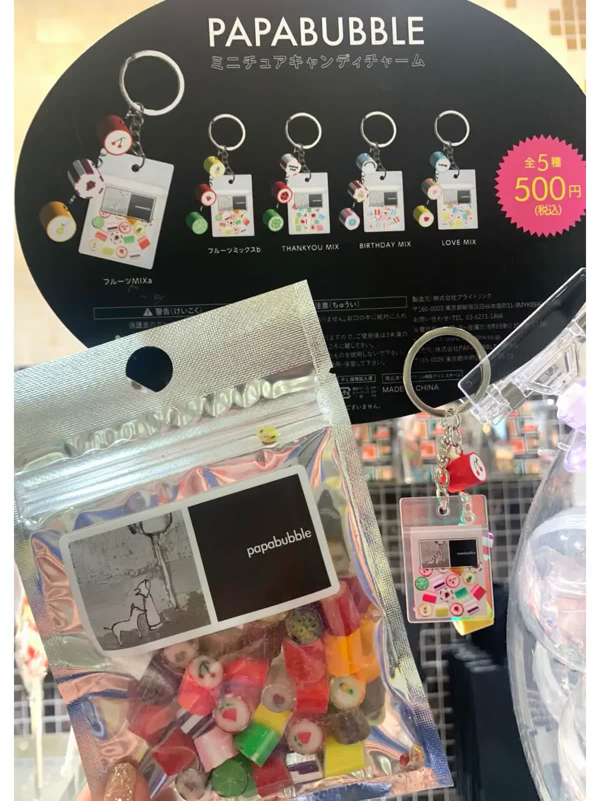 今回も、フルーツMIX(2種)、THANKYOU MIX、BIRTHDAY MIX、LOVE MIXという5種類をラインナップ。 人気の定番商品が小さくなったBAG型アクリルチャームに、本物とほぼ同じサイズのキャンディ型チャームが繋がった、ついついコレクションしたくなる可愛さが特徴です。いずれも数量限定での販売となります。