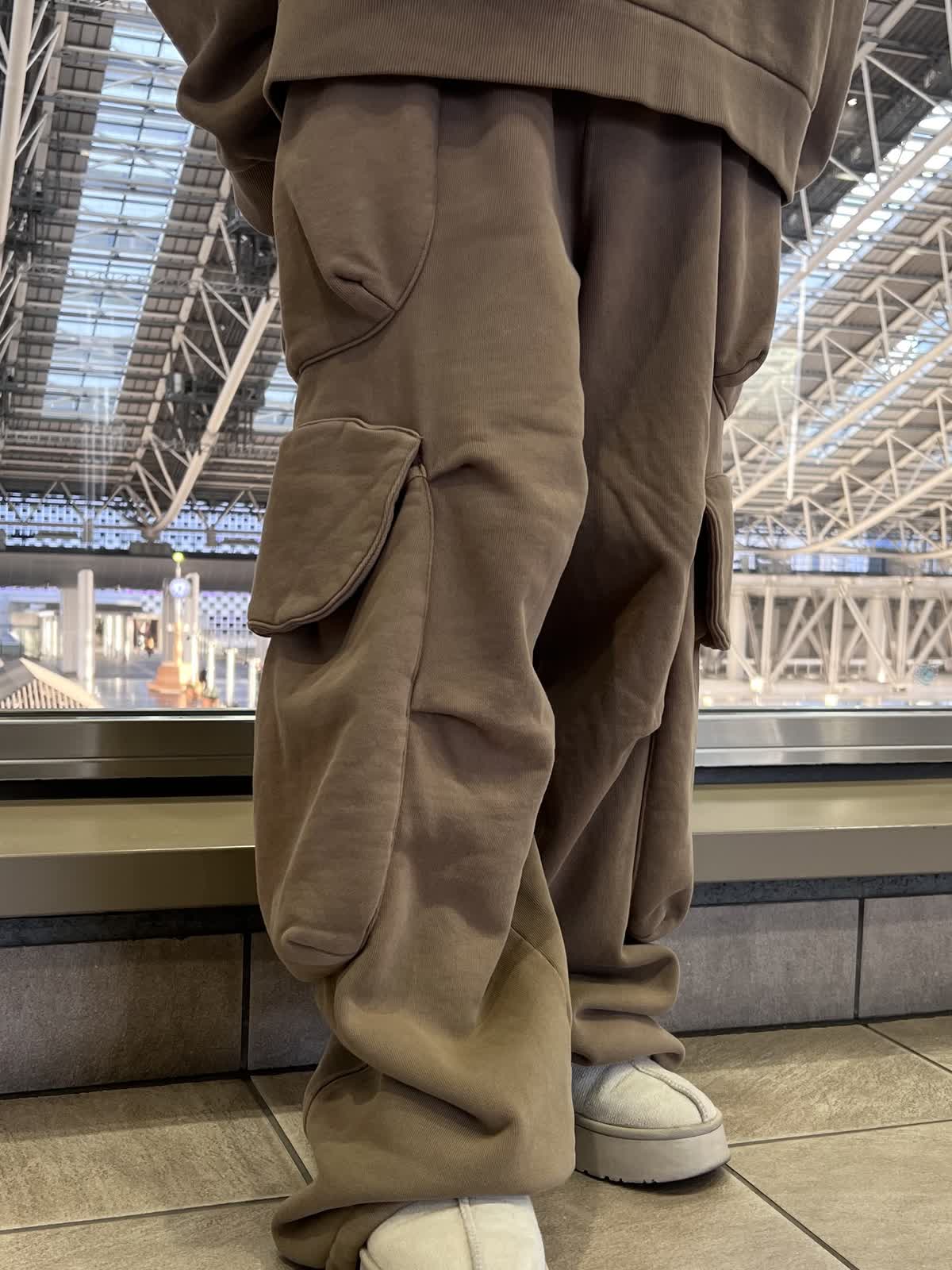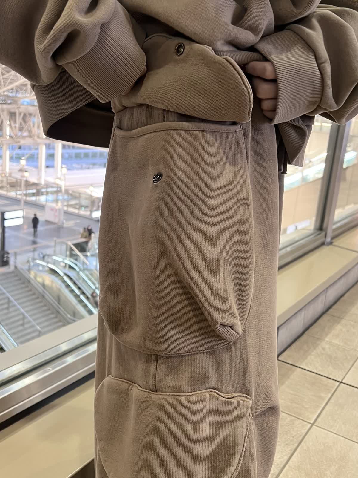 ボトムスはひざにタックがあり、ウエストは伸縮性のあるドローストリング付きなので女性の方でも着用可能です!!