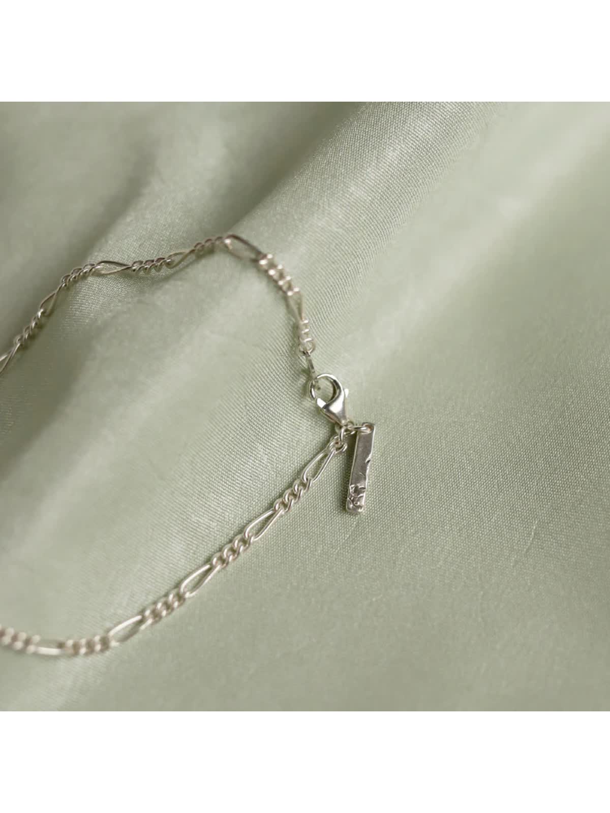 オリジナルプレートをあしらったフィガロチェーンブレスレット。